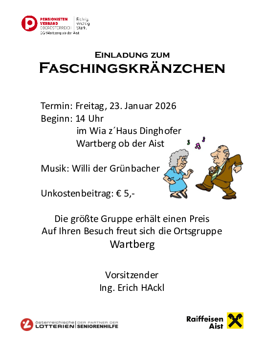 Beginn 14.00 Uhr im Wia z`Haus Dinghofer in Wartberg ob der Aist