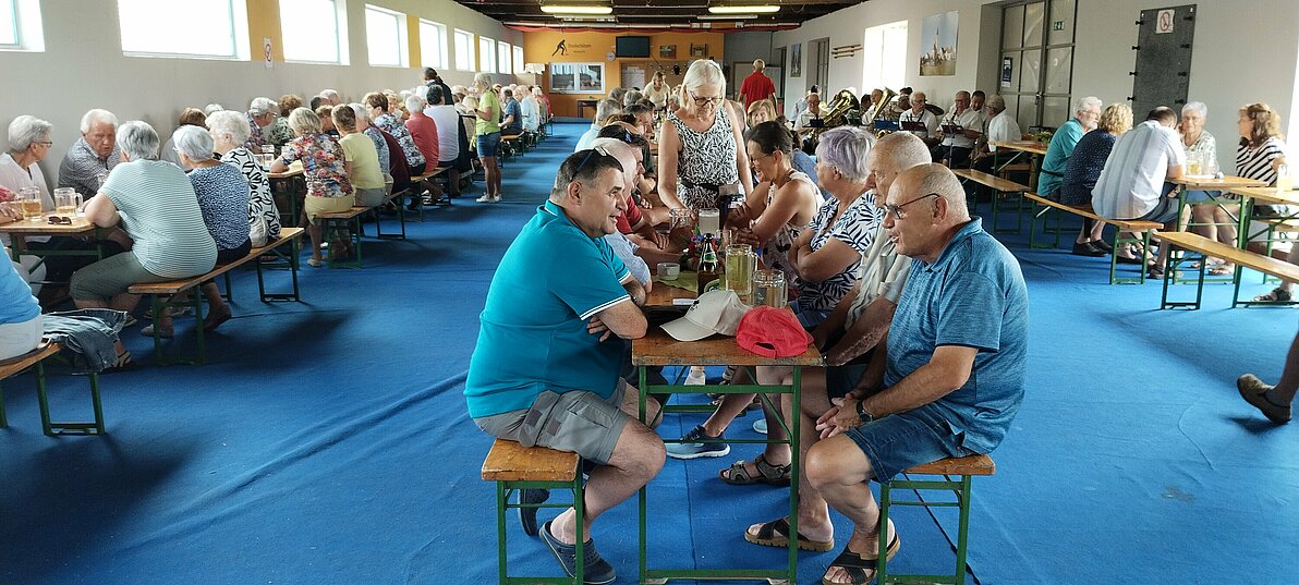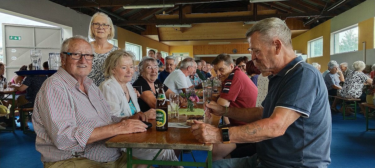 Der PV Wartberg lud seine Mitglieder/innen zum Grillfest ein. Ab 14.00 Uhr tummelten sich bereits eine Vielzahl an Damen und Herren in der Halle. Insgesamt konnte unser Vorsitzender Ing. Erich Hackl 180 Pensionist*innen begrüßen. Auch Gäste der Gemeinde Rainbach folgten der Einladung. Für das leibliche Wohl war bestens gesorgt. Zum Kaffee gab es Kuchen und Torten. Am Griller brutzelten Käsekrainer, Krainer und vegetarische Laibchen. Zur musikalischen Unterhaltung trug eine Abordnung der Musikkapelle Wartberg bei. Die Stimmung unter den Gästen war bestens. Ein großes Dankeschön gebührt allen Helferinnen und Helfern, ohne die so eine Veranstaltung nicht möglich wäre. Unermüdlich liefen sie mit Essen und Getränken durch die große Halle um alle Gäste zu versorgen. Wir freuen uns auf ein Wiedersehen bei unseren nächsten Festen.
