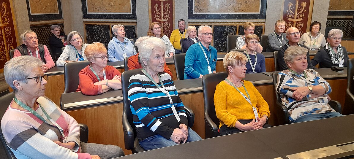 Zuerst stand der Besuch beim Parlament am Programm. Nach der Führung durch das Haus konnten wir als Besucher auf der Galerie einer Plenarsitzung des Nationalrates beiwohnen. Nach dem Parlamentsbesuch fuhren wir zum Mittagessen ins Concordia Schlössl gleich beim Zentralfriedhof. Im Anschluss Besichtigung des Zentralfriedhofes mit Führung zu den prominenten Gräbern. Die Heimfahrt führte uns noch zum Heurigen Hold in Artstetten.