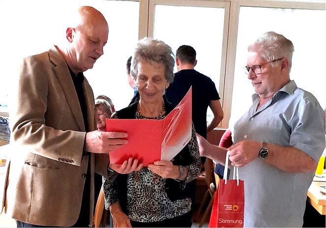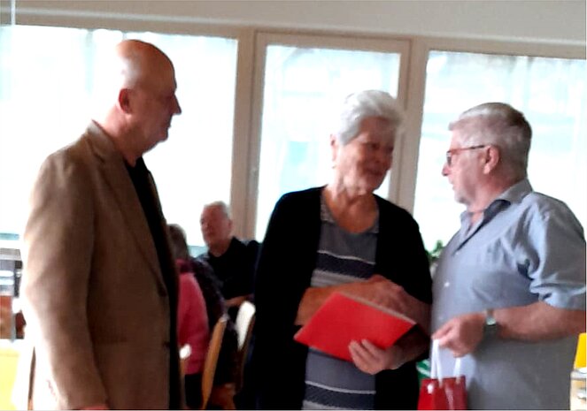 Bei unserer Jahreshauptversammlung durften wir 8 Mitglieder persönlich zu ihrem Jubiläum gratulieren. 4 Mitglieder fanden leider keine Zeit bzw. waren verhindert. Unser Bezirksvorsitzender Hans Affenzeller gratulierte nicht nur unseren Jubilaren sondern auch unserer Ortsgruppe zum 118 enten Mitglied. Leo Affenzeller wurde von der Ortsgruppe für die Mitgliederwerbung mit einer Flasche Wein belohnt. Danke Leo! Es war, glaube ich, ein gelungener Nachmittag bei dem auch der Spaß nicht zu kurz kam.