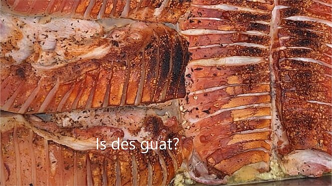 Kistenbratl gebraten im Hause Niederberger verzehrt beim Wieser