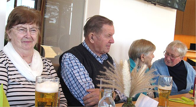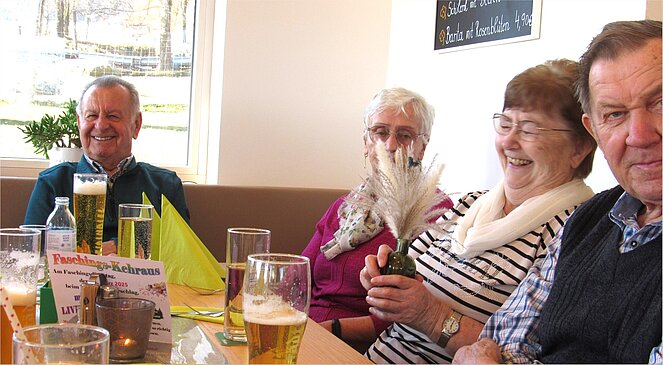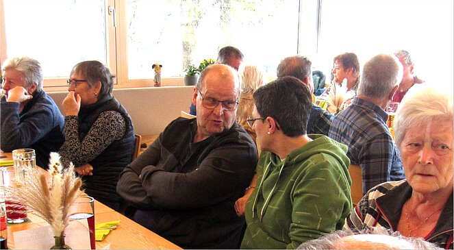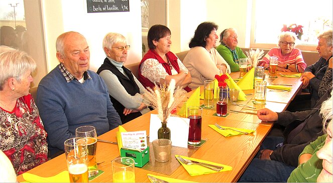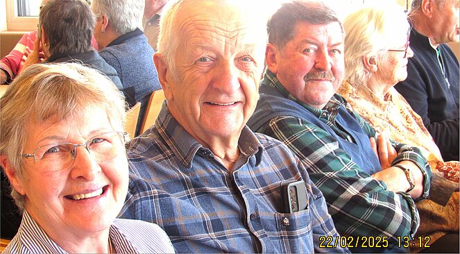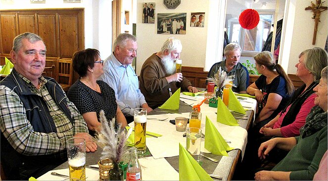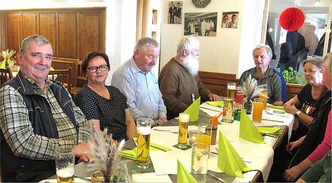 Es gibt nichts Schöneres für einen Vorsitzenden ein Gasthaus voll mit Pensionisten und schönen Frauen begrüßen zu dürfen. Das Erste Mal mussten wir ins GH. Rudelstorfer ausweichen aber es war sicher kein Fehler. Wir unterhielten uns prima, so dass die Zeit wie im Fluge verging. Der harte Kern zu dem auch ich und meine liebe Gattin gehört wollte wie immer nicht nach Hause. Besondere Freude hatte ich, dass unsere ehemalige Wirtin Martina Wieser und die Fam. Aufreiter dabei waren.