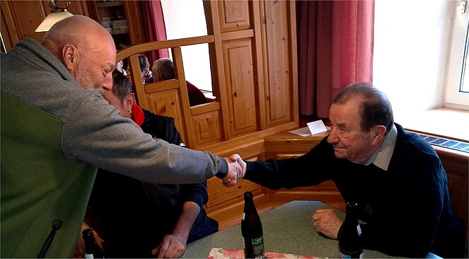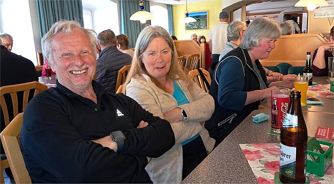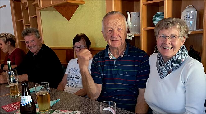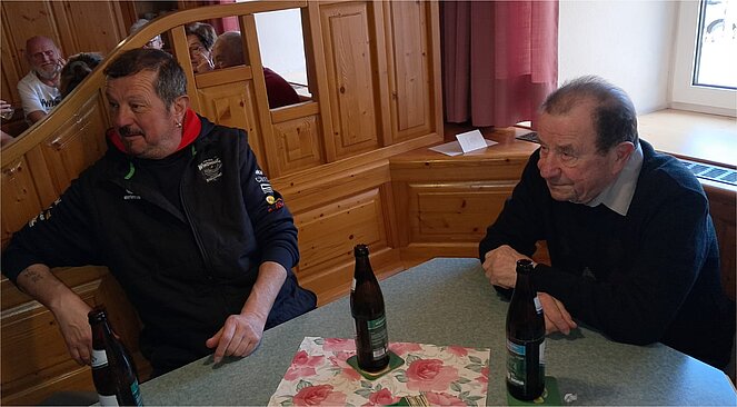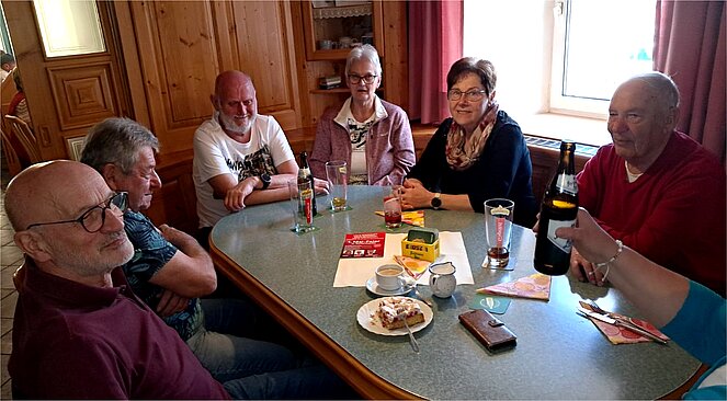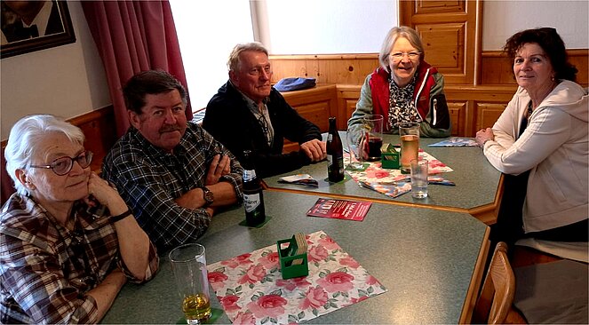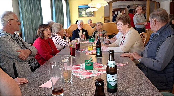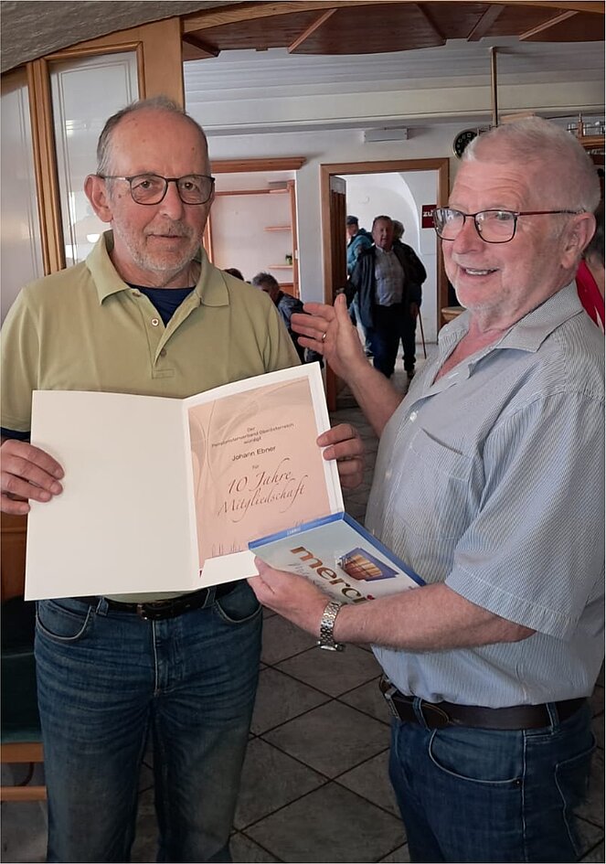 Bombenstimmung war es nicht, aber lustig und kurzweilig schon. Was mich am meisten freut, dass unser Ehrenvorsitzender Willi Jung nach seinem schweren Unfall wieder so weit gesund ist und bei unseren Unternehmungen wieder dabei sein kann.73 Schnitzl fanden ihren Abnehmer. Krankheitshalber wurden einige abgeholt bzw. zugestellt. Die Gelegenheit dass Herr Johann Ebner anwesend war wurde er zum 10järigen Beitragsjubiläum nachträglich geehrt. Merci!