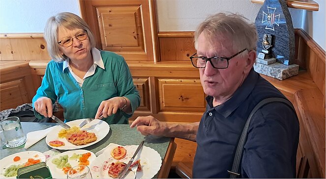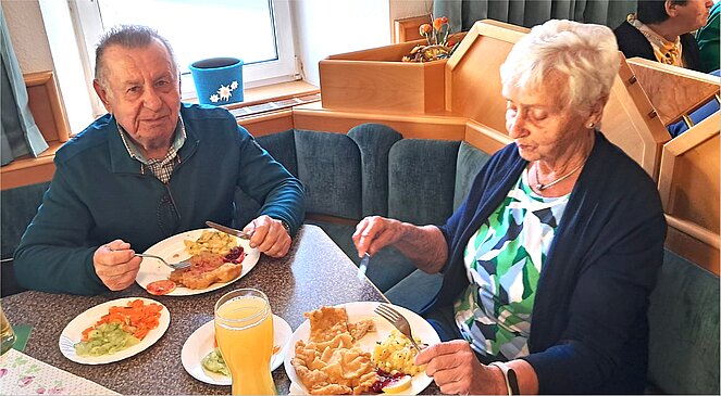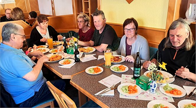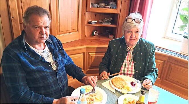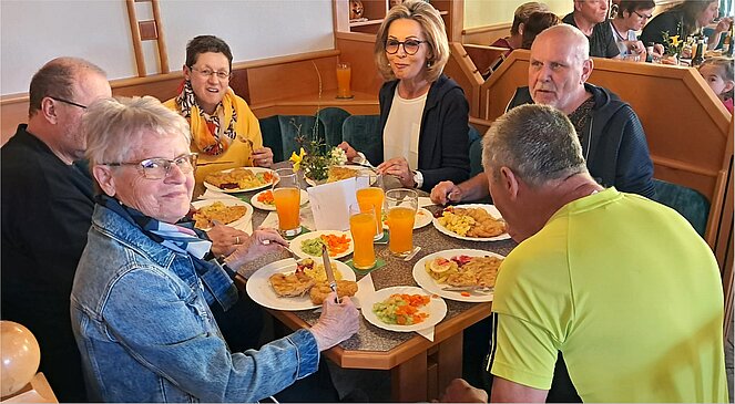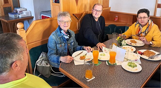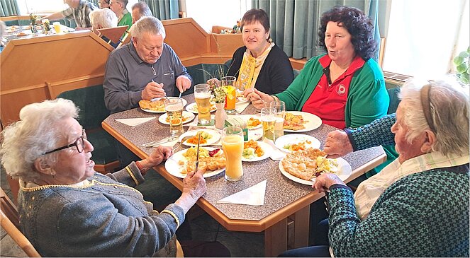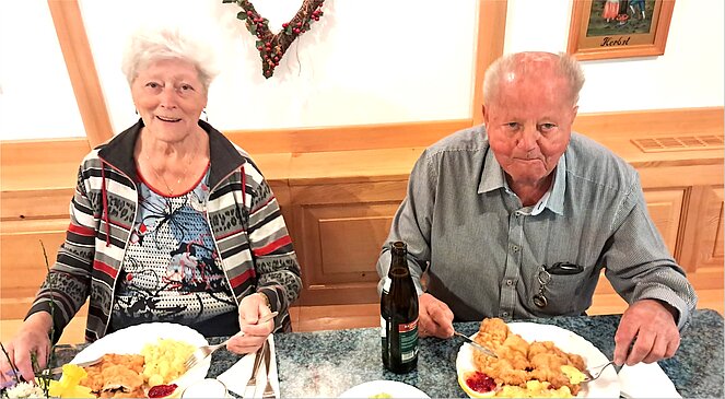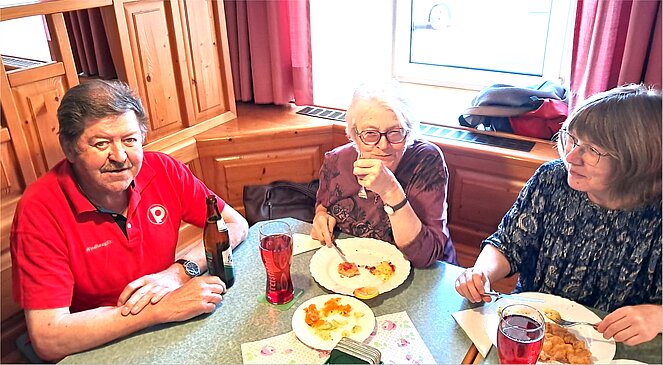 Das perfekte Schnitzl wurde uns heuer von Martina zubereitet. Ich glaube es hat nicht nur in der Küche Perfektion geherrscht, ich glaube unser Service war auch nicht von schlechten Eltern. Danke Andrea aber auch allen anderen Helfern ohne die solche Veranstaltungen nicht möglich wären.ca 65 Mitglieder oder solche die es noch werden wollen, liesen sich das Schnitzl auf der Zunge zergehen. Besondere Freude habe ich mit Frau Rosa Mayer die mit 95 noch immer dabei ist. Sie feiert im Mai den 95. Geburtstag.