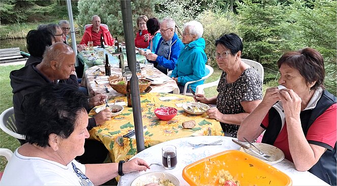 Ideales Wanderwetter leider nur bis zum gemütlichen Teil der Wanderung. Karl Kadlec war kein Weg zu weit. Er suchte uns eine schöne Wanderung Richtung Tschechien. Bei der Unterführung rechts zum Dienstl und zurück nach Deutsch-Hörschlag. Von dort war der Weg über den Gemeindebrunnen 6 zum Hayböck Heli seinen Teich nicht mehr weit. Für das leibliche Wohl sorgte wie immer die OG. Rainbach mit ausgezeichnetem Schopf bzw. Käsekrainer. Das Ganze wurde perfekt durch Kaffee und Kuchen. Einen Großen Dank der Ortsgruppe um Neulinger Maria.