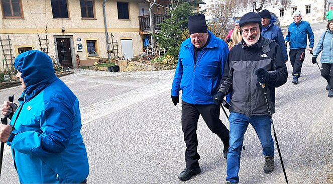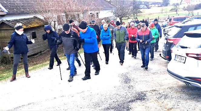 St Peter empfing uns mit Kälte eisigem Wind aber trocken und ohne Schnee. Leider suchten wir bei unserer Wanderung die Strecke nicht nach windgeschützten Wegen, nein wir waren dem Wind die ersten Km. voll ausgeliefert. Wir gingen Richtung Dreißgen, Sonnberg und über den Übungsplatz des Bundesheers wieder zurück zum GH. Brunngraber. Wo uns der Wirt mit für Windhaager Pensionisten erwünschtem Bratl mit Kraut erwartete. Als Abschuss spendierte der Wirt ein Schnapserl 34 Mitglieder waren trotz Kälte und Wind zufrieden.