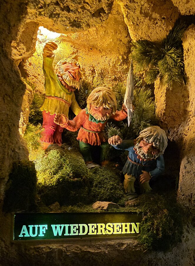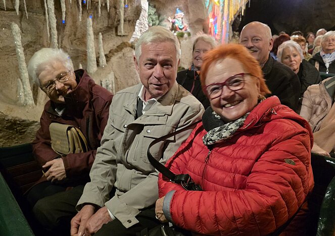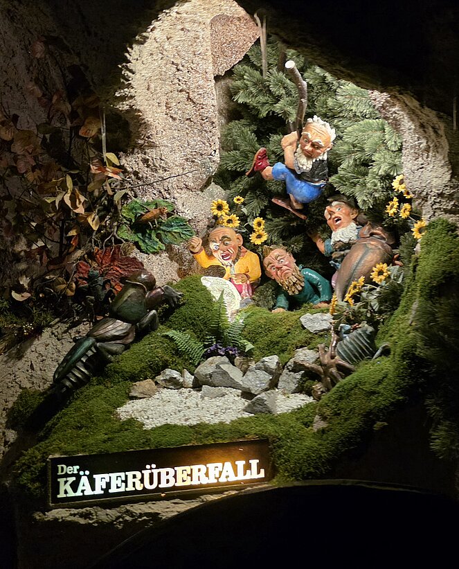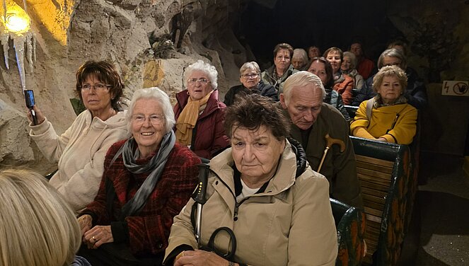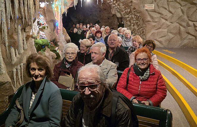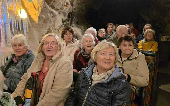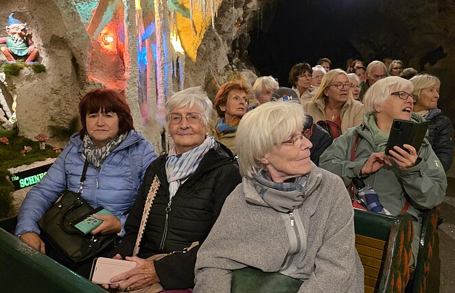 Mit einem voll besetzten Autobus ging es im Oktober Richtung Linz und vorbei zur Salamitrocknung Saller im Mühlviertel. Beieindruckt vom Vortrag des Firmenchefs wie seine Salami- und Speckprodukte erzeugt werden, bzw. was hinein darf und NICHT hinein darf, liesen wir uns die Verkostung schmatzend schmecken. Anschliessend gab es noch genug Zeit zum ausführlichen Einkauf. Auf dem Weg zurück in die Stadt Linz, vorbei an wundervoll schönen, verfärbten Herbstwäldern, hoch hinauf auf den Pöstlingberg. Ein einzigartiges Panorama, hoch über die Stadt Linz und weit hinaus, wurde uns von der Aussichtsplattform geboten. Nach einem stärkenden Mittagessen beim Kirchenwirt ging es zur Grottenbahn zum sogenannten "Zwergerlschneutzen". Schon beim Betreten der Grotte und der Bahn wurde ein jeder von uns zum Kind mit großen Augen und man genoß die Fahrt ringsum mit der Drachenbahn. Niedlich dargestellt wurden die vielen Situationen des Zwergenlebens und im Anschluss noch märchenhafte Darstellungen im Kellergeschoss, sowie eine Miniaturansicht der alten Linzer Geschäftslokale am Hauptplatz. Mit viel guter Laune ging es zum Abschluss ins legendäre Kaffehaus Jindrak wo sich ein jeder noch einen guten Kuchen mit Kaffee schmecken ließ.Wieder einmal durften die Mitglieder des PVÖ Bad Ischl gemeinsam einen schönen, informativen Ausflugstag geniessen.