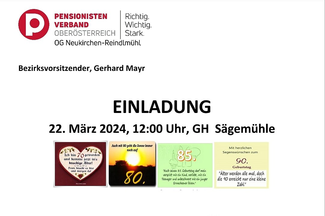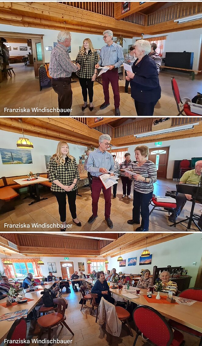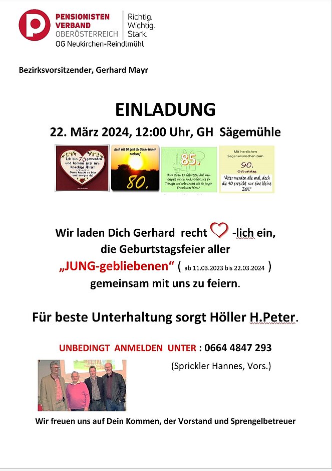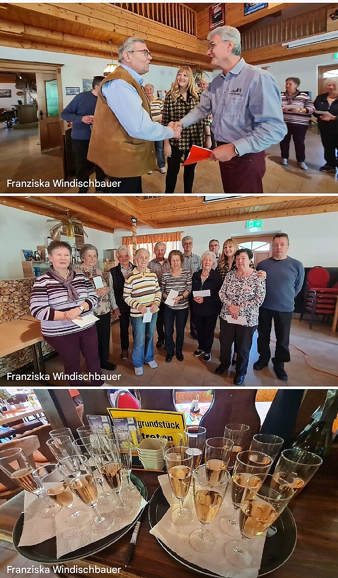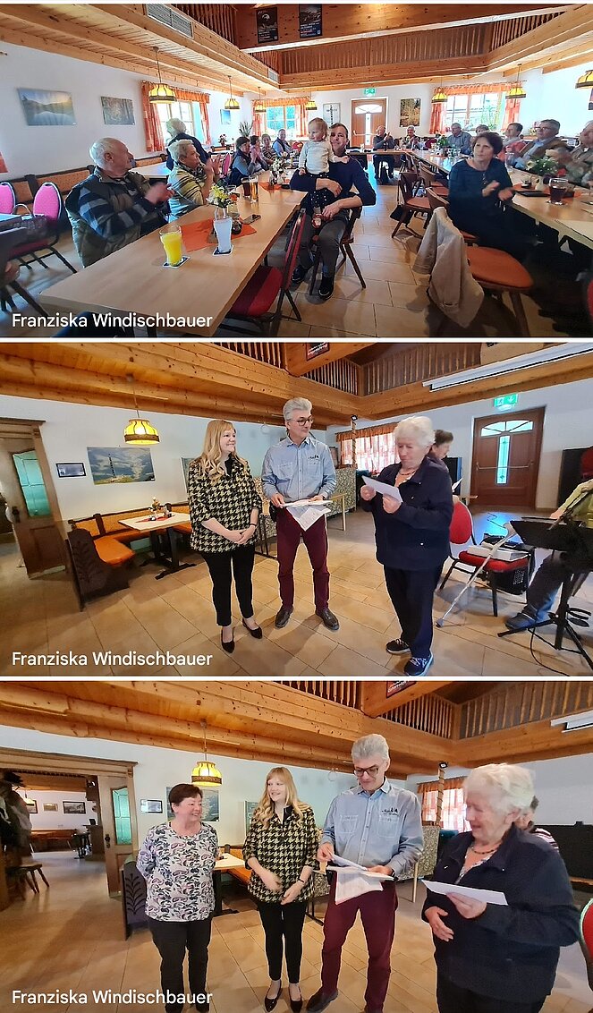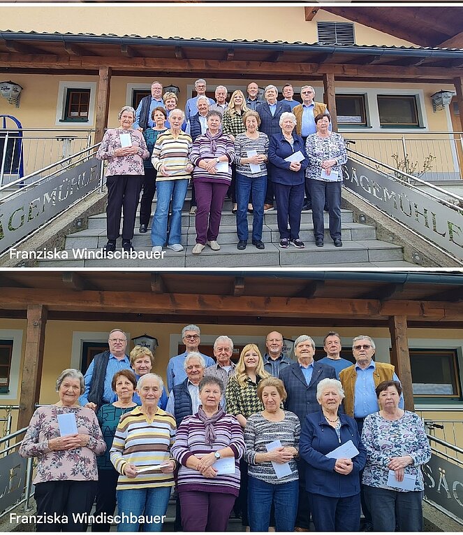 Zum 4.mal feierten unsere Geburtstagskinder (70er, 80er, 85er, 90er und 90er+) aus 2023 gemeinsam mit ihren SprengelbetreuerInnen ihren Jubeltag. Von 12 geladenen Gratulanten kamen 8 Jubilare persönlich zur Feier ins Gasthaus "Sägemühle". Als Ehrengäste kamen Elisabeth Feichtinger , NR-Abgeordnete und Vzbgm., ihr Gatte Florian, SPÖ Obmann, und unser Ehrenvorsitzender Berthold Feichtinger. Musikalisch begleiteten uns Höller H.Peter und sein Kumpan "Budi". Mit flotten Rhythmen verschönerten sie unseren Nachmittag. Mit einem Glas Sekt und einem kleinen Geschenk (Altmünsterer Gutscheine) wurde auf ihren Jubeltag angestoßen.