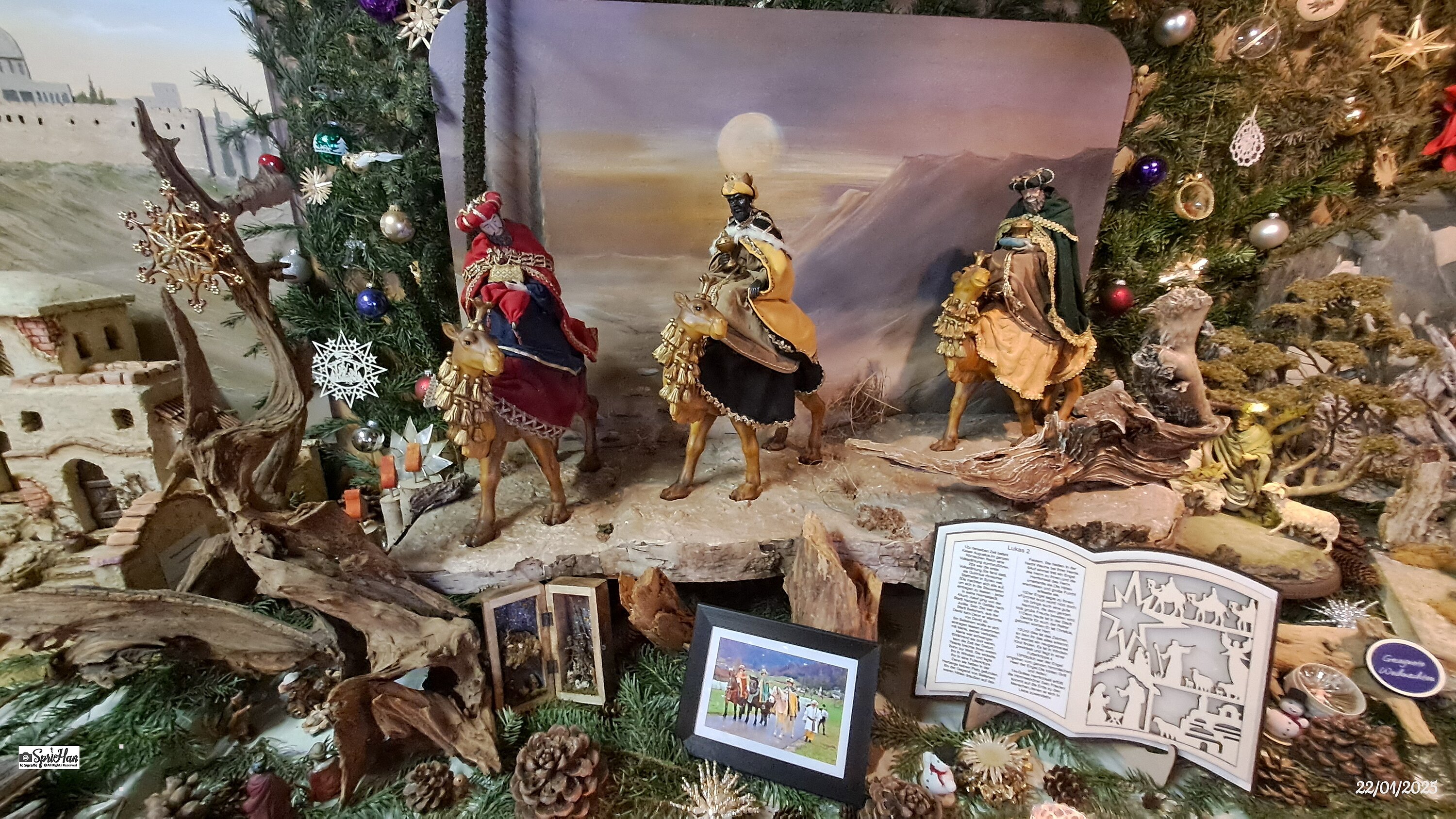 Jedes Jahr am 23. Dezember beginnen Sie mit dem Aufstellen der Krippen, schmücken hierzu eine eigene Hütte an der Decke mit Tannenreisig und mittlerweilen 1.200 Christbaum Kugeln. Eine Besonderheit heuer ist die Ausstellung unserer "3 Viechtauer Königsreiter" , ( https://www.facebook.com/share/p/15edG5mFqx/ ) geschmückt in geschneiderten Original Gewändern. Die Figuren sind ungefähr 30cm hoch und wurden in stundenlanger Arbeit hergestellt.