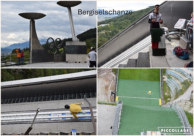 Unser nächstes Ziel war die Bergisel Schanze. Ein Teil unserer Gruppe nahm an einer Führung eines Skispringers teil. Es gab fünf Sprünge, zwei sahen wir vom Ziel aus, einen vom Schanzentisch und 2 vom Absprungturm.