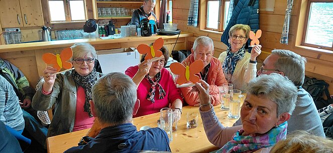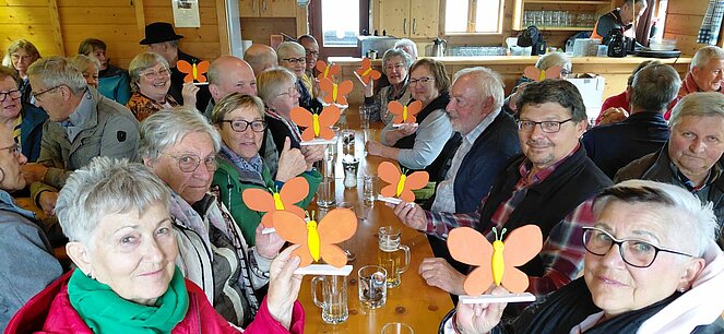 Nach einer kurzen Ansprache von Obmann Christian Humer zum bevorstehenden Muttertag gab es für alle Frauen einen selbstgebastelten Schmetterling als Frühlings- und Muttertagsgruß vom Kollegen Moser Leopold.
