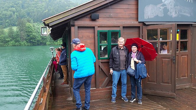 Es wurde viel gelacht, und trotz des schlechten Wetters fanden sich immer wieder Teilnehmer auf der offenen Plattform ein, um den Anblick der Umgebung zu genießen.