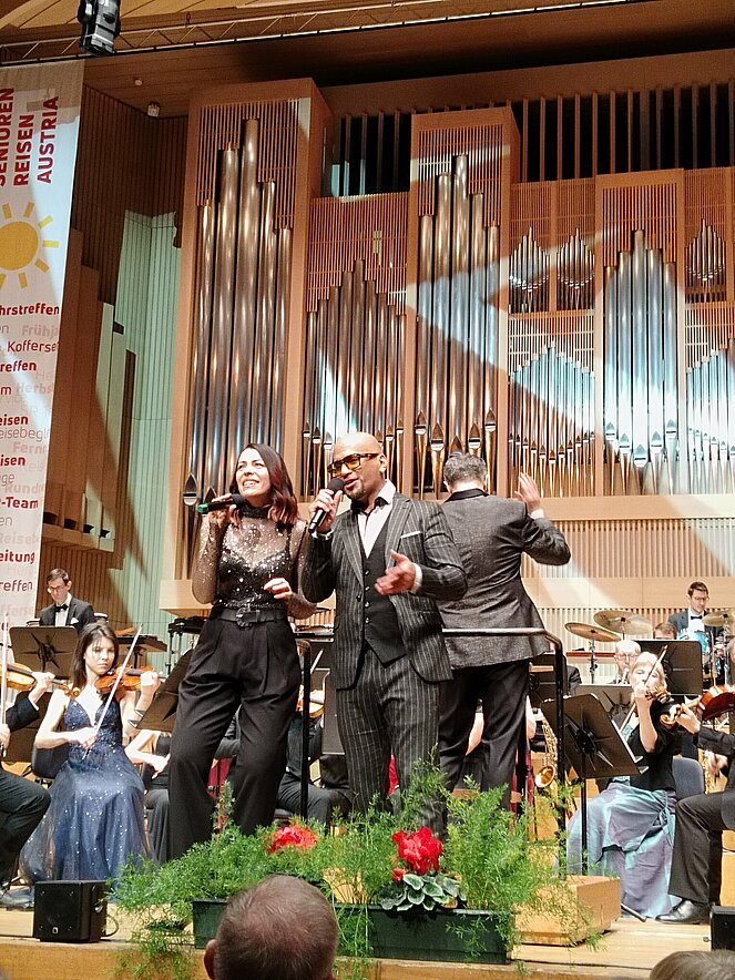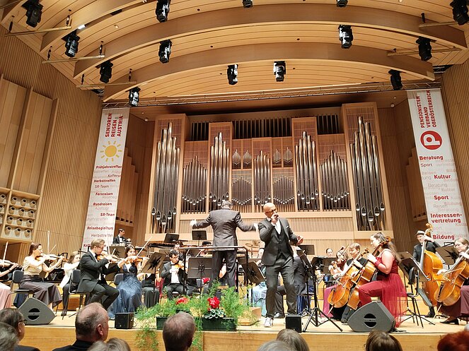 Einen fulminanten Auftakt ins neue Jahr erleben wir im Brucknerhaus. Im vollbesetzten Saal lauschen wir dem Philharmonie pt art Orchester Linz unter der Leitung von Norbert Hebertinger. Beschwingte Orchesterklänge begleiten die Solistin Kerstin Turnheim und Eric Papilaya, der die Veranstaltung moderiert und singt. Benedikt Autzinger spielt auf der ‚Steirischen‘ Stücke von Herbert Pixner, begleitet vom Orchester. Der zweite Teil nach der Pause ist dem Swing und den Big Bands mit altbekannten Ohrwürmern gewidmet.