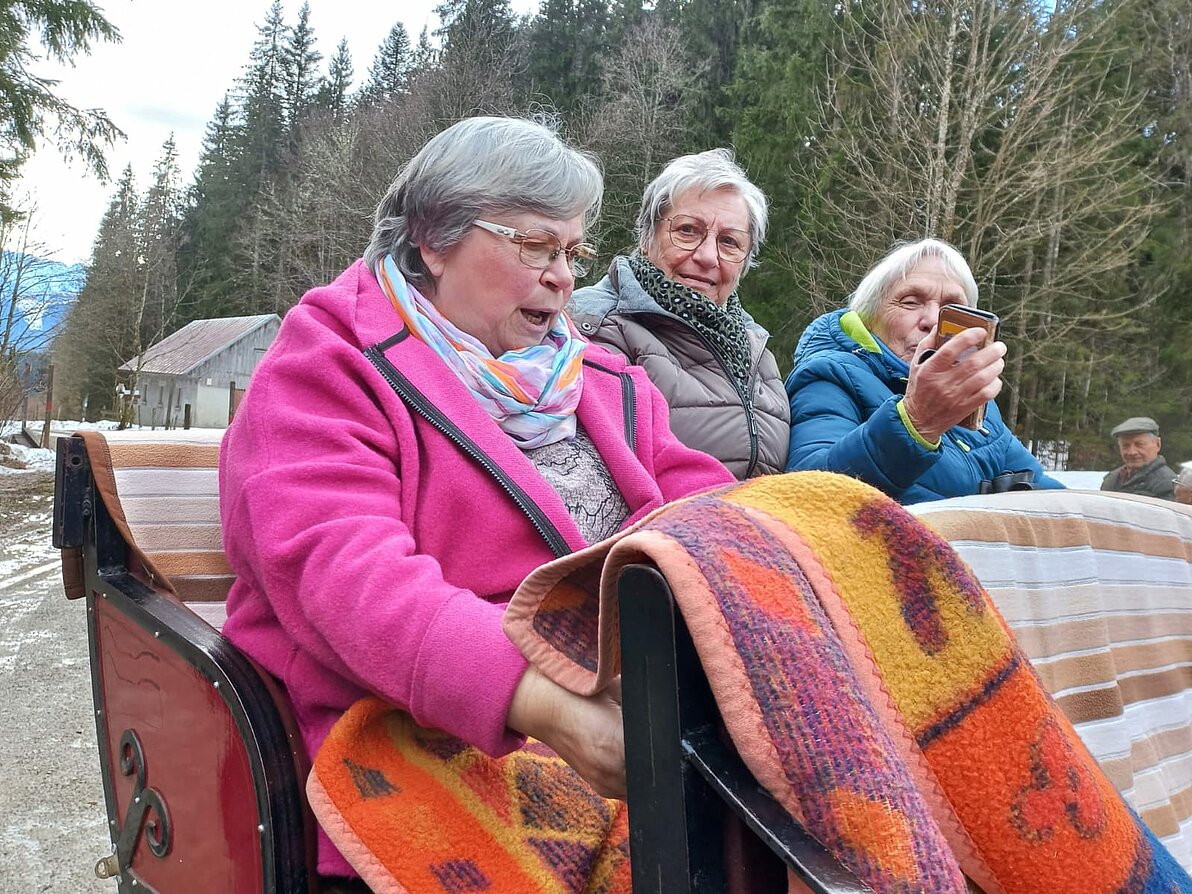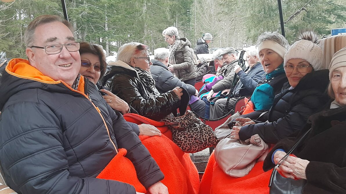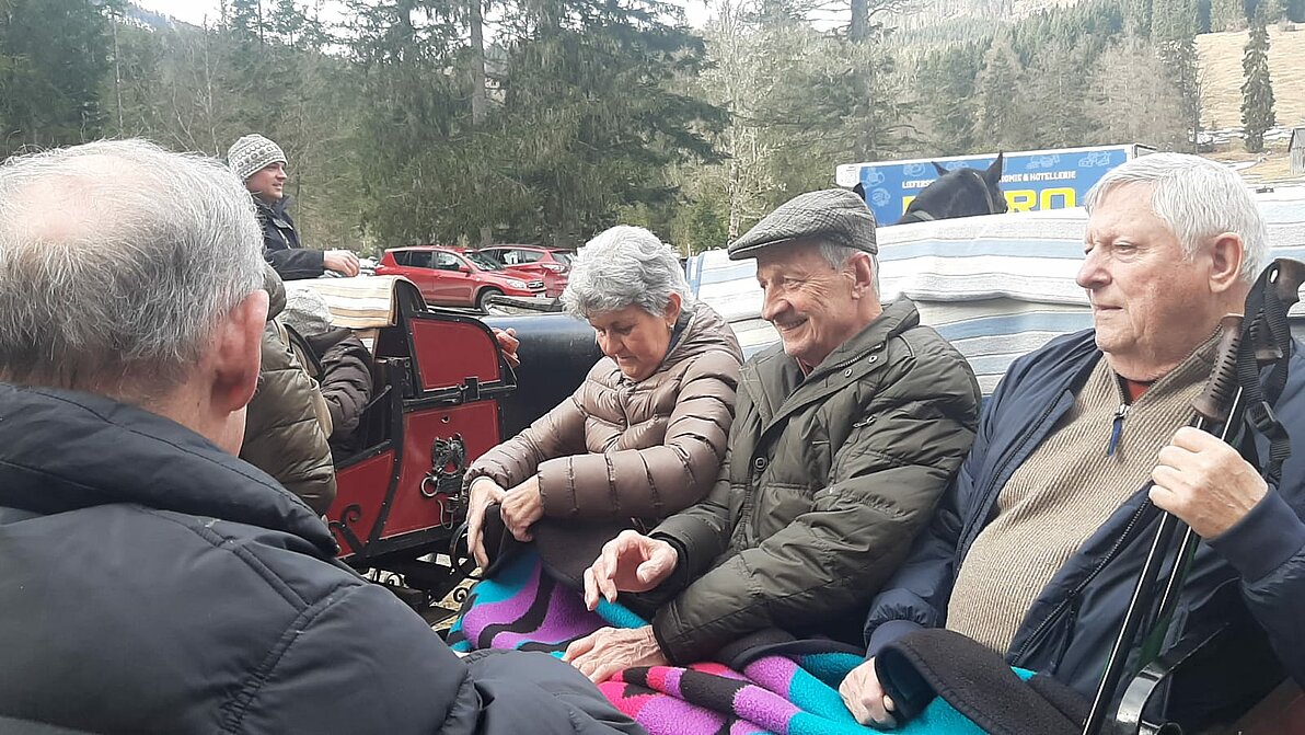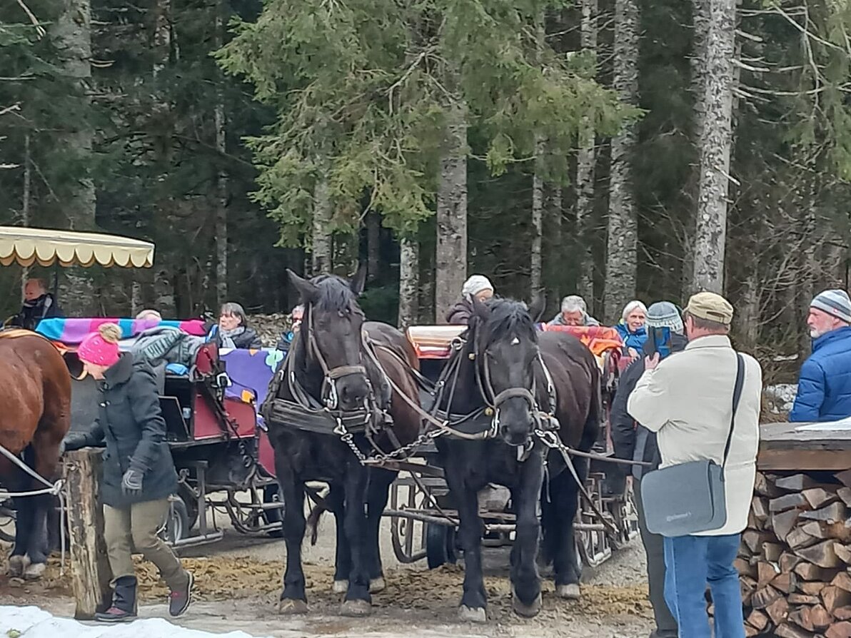 Die Pferdeschlittenfahrt wurde kurzerhand zur Kutschenfahrt aufgrund des frühlingshaften Wetters. Das tat jedoch der guten Laune keinen Abbruch und in der Singhauserhütte wurde ausgiebig geschlemmt.