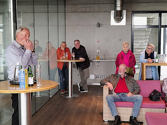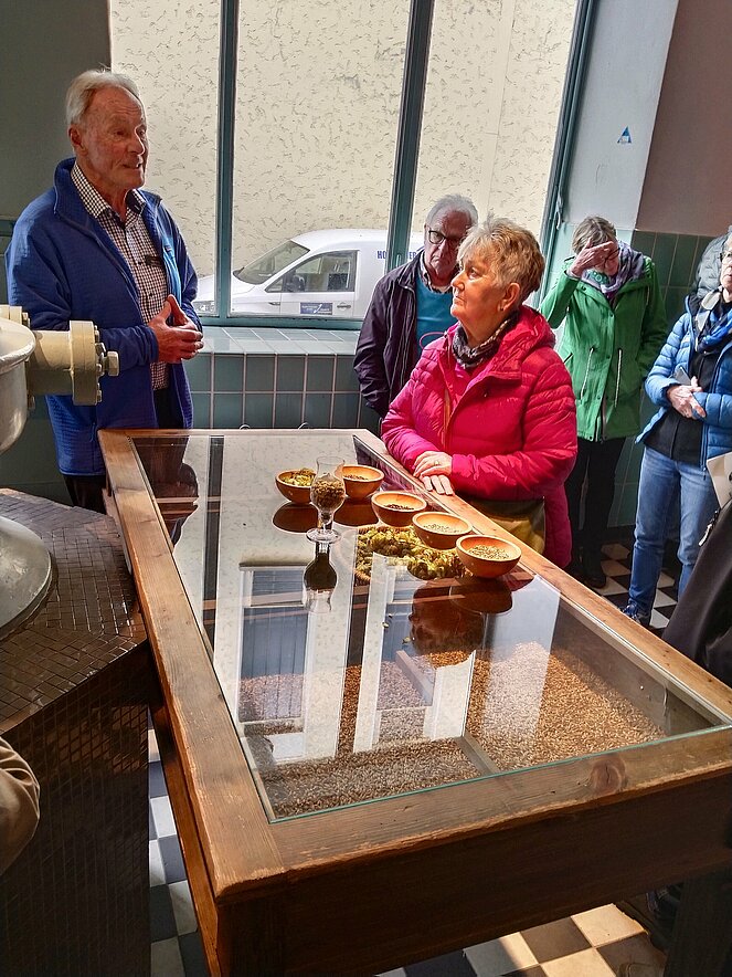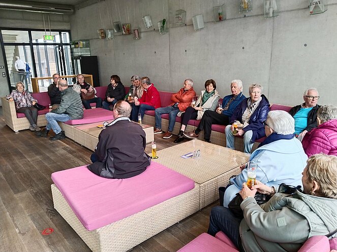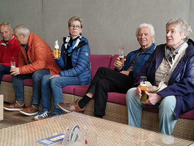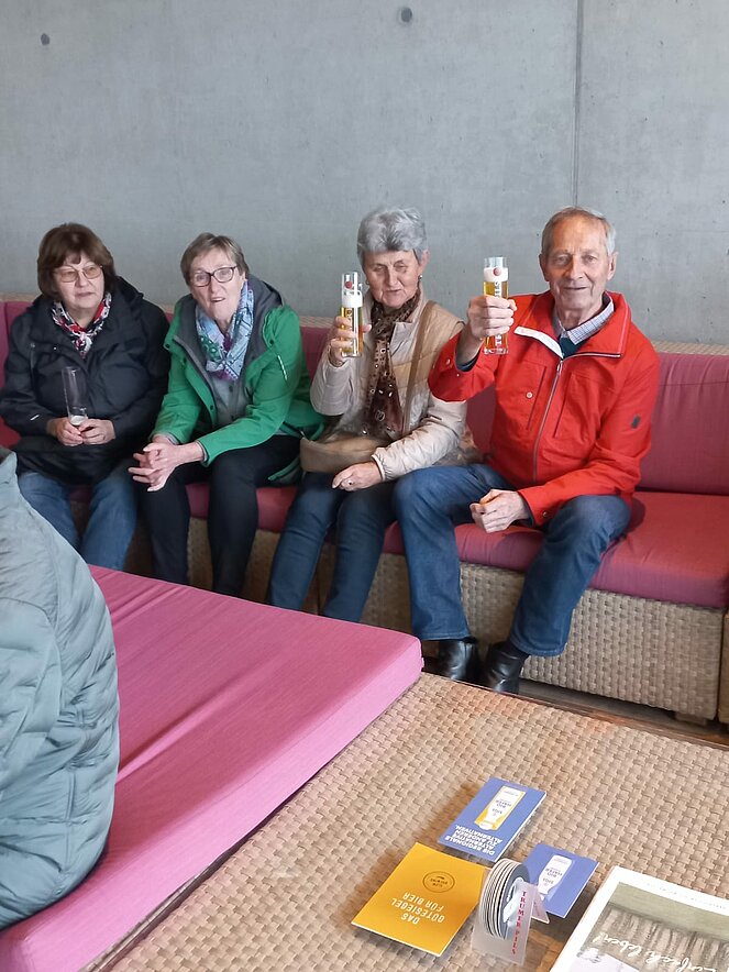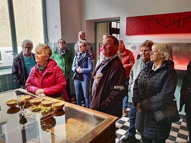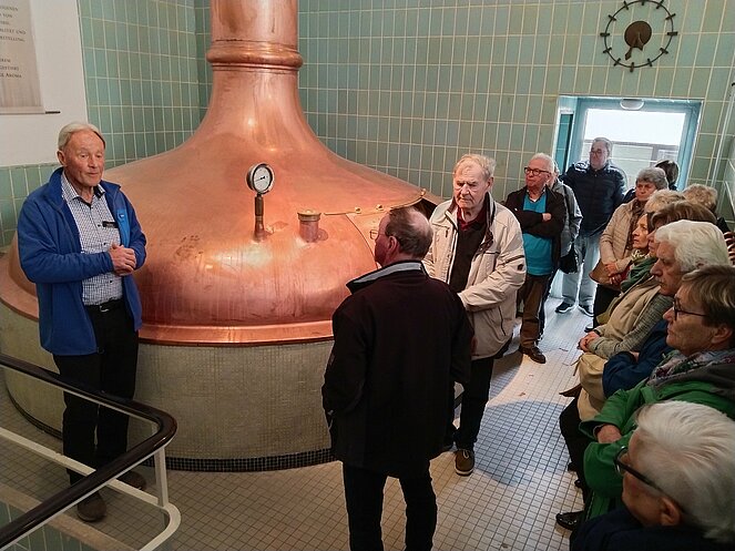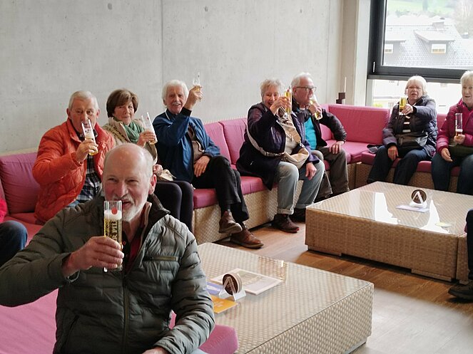 Nach dem hervorragenden und reichlichen Mittagessen fahren wir nach Obertrum zur Besichtigung der Brauerei. Es ist beeindruckend, welche Vielzahl an unterschiedlichen Bierspezialitäten ausschließlich aus den Zutaten Malz, Hopfen, Wasser und Reinzuchthefe gebraut werden. Bei der anschließenden Bierverkostung gibt der Alt-Braumeister noch seine Mundharmonika-Künste zu Besten.