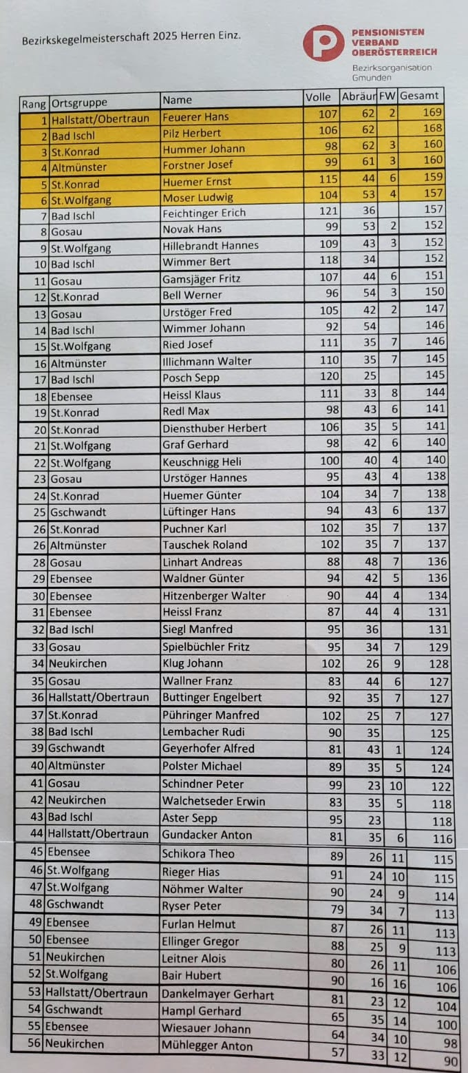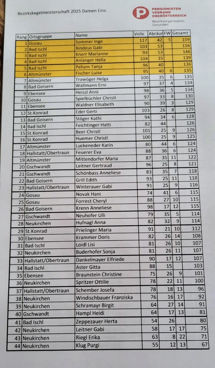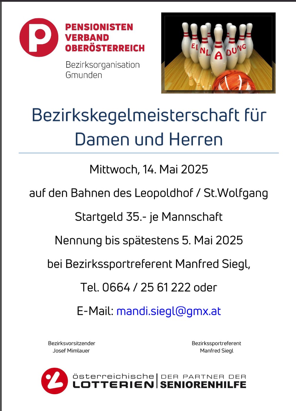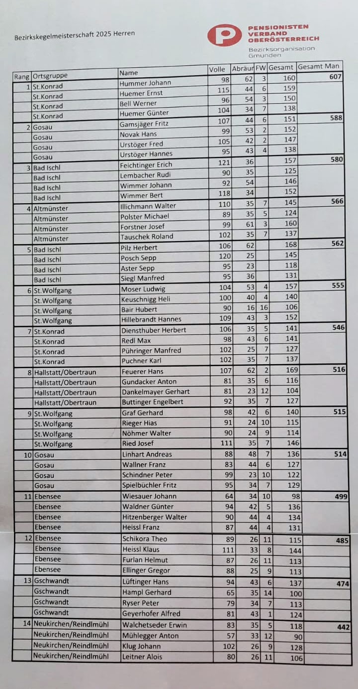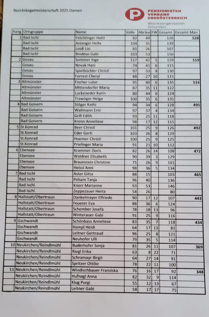 Die große Teilnehmerzahl an diesem Bezirksevent des PVOOE stellt die sportlichen Leistungen der Pensionisten:innen in den Vordergrund. Lustig, aber sportlich fair wurde viele Stunden um die Wette gekegelt, bis endlich die Sieger feststanden.