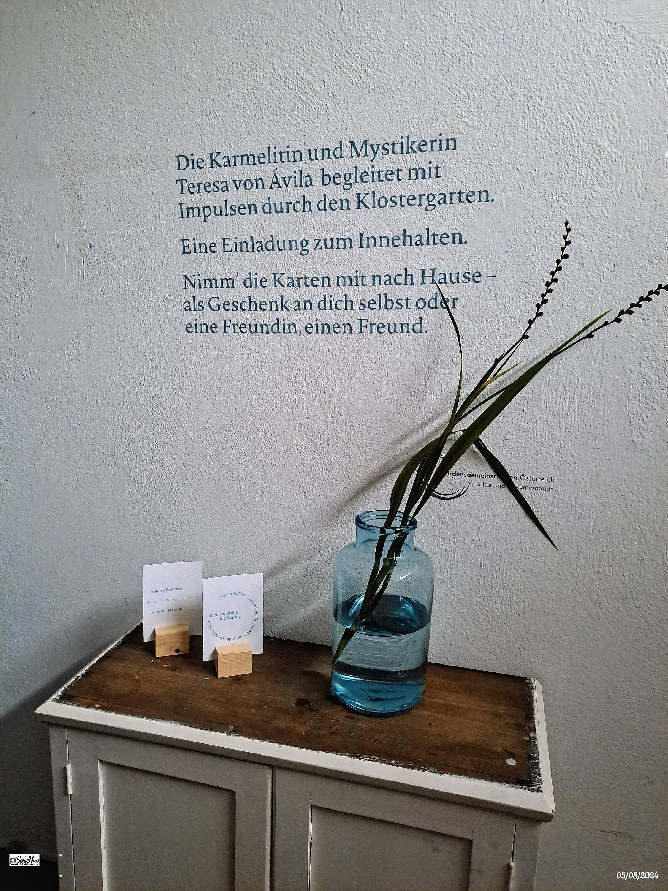 Die Kulturhauptstadt Bad Ischl Salzkammergut 2024 „schafft Räume und schlägt Brücken zwischen Vergangenheit und Gegenwart in Richtung Zukunft", so die Veranstalter.,,Die Öffnung des Karmelitinnen-Klostergartens in Gmunden nach fast zwei Jahrhunderten ist ein besonderes Ereignis." Das Projekt entstand in Zusammenarbeit der Ordensgemeinschaften Österreichs und der Diözese Linz mit den Kulturhauptstadt-Verantwortlichen: „Gärten sind oft intime Orte, welche nicht von der Öffentlichkeit eingesehen werden können. Genauso wie der Klostergarten der Karmelitinnen bis vor Kurzem verbleiben sie meist im Verborgenen." Der Bereich Kultur und Dokumentation der Österreichischen Ordenskonferenz ist am Samstag 6.4.2024 gestartet worden. Ein Projekt hat die "KLOSTERSCHREIBERIN" mit der Autorin Cornelia Hülmbauer.