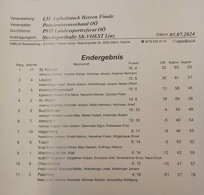 Landesmeister im Asphalt-Stockschiessen kommt aus dem Bezirk Gmunden