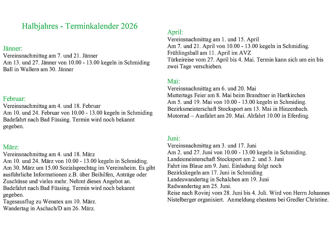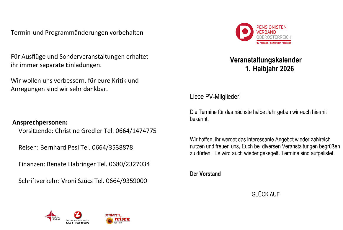 Veranstaltungskalender 1.Halbjahr 2026