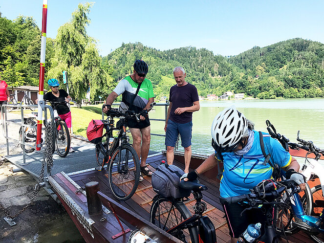 Treffpunkt war um 9:00 Uhr bei der Schiffsanlegestelle in Aschach. Die Route führte in die Kaiserau dann mit der Fähre nach Untermühl u. weiter nach Obermühl. Mittagessen war im Gasthaus Gierlinger im schattigem Gastgarten. Nach dem Essen ging es weiter mit der Fähre nach Kobling, danach donauabwärts nach Aschach. Bei der großen Hitze gönnten sich viele Pens. noch ein Eis oder ein Bier in den Gastgärten in Aschach /Donau
