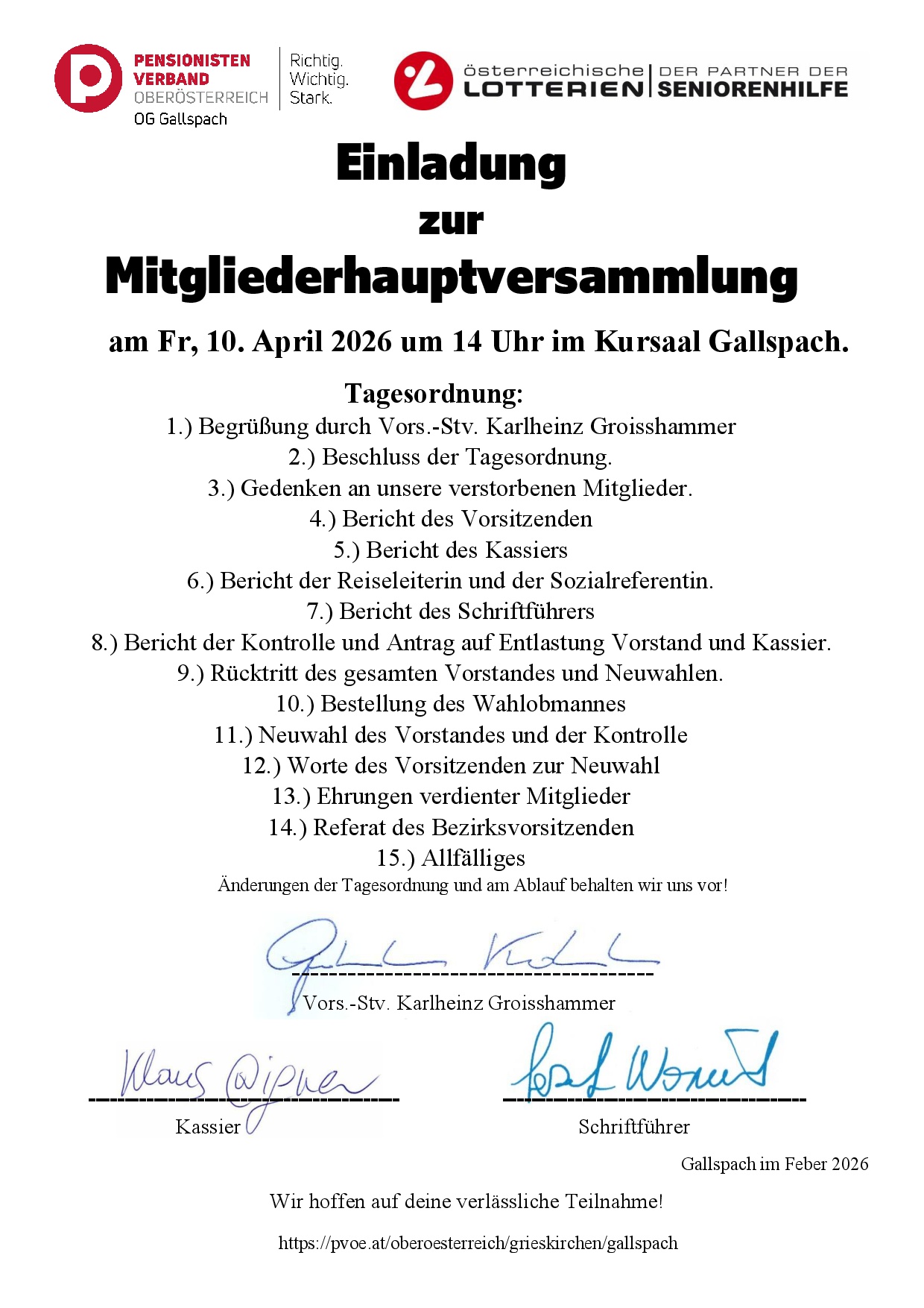 Einladung Hauptversammlung 2026 - Kursaal Gallspach