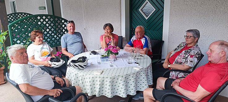 Bei schönstem Sonnenschein fuhren 11 Mitglieder über Meggenhofen nach Gaspoltshofen und dann auf der Bahntrasse nach Haag. Von dort ging es weiter über Rottenbach und Hofkirchen nach Taufkirchen. Dort kehrten wir beim Kirchenwirt ein. Gestärkt mit einer guten Jause kamen wir nach 57 km müde heim.