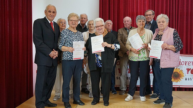 Wir konnten eine stimmungsvolle und gemütliche Mutter- und Vatertagsfeier feiern. Als Ehrengäste begrüßten wir Landtagsabgeordneten Thomas Antlinger, Bürgermeister Klaus Höllerl, Bezirksvorsitzenden Konsulent Gottfried Tröbinger und Gemeindevorstand Hubert Zechmeister. Eine besondere Freude war es für uns, den Gründer der PV Ortsgruppe Schlüßlberg, Altbgm. a.D., LAbg. a.D. Otto Weinberger begrüßen zu dürfen. Nach den Begrüßungsworten wurden 13 Mitglieder für die langjährige Mitgliedschaft geehrt. Maria Mairhuber und Angela Flixeder wurden mit der Ehrennadel in Gold für besondere sportliche Verdienste geehrt. Angela Flixeder war leider nicht anwesend, ihr wird die Auszeichnung bei nächster Gelegenheit überreicht. Nach dem Mittagessen, welches wieder vom Gasthaus Mauernböck geliefert wurde, konnten die Mitglieder sich über einen süßen Nachtisch, gespendet von den SPÖ Frauen, freuen. Auch die Blumenspende wurde von Ihnen zur Verfügung gestellt. Ein großes Dankeschön dafür. Ein besonderes Lob gebührt den vielen fleißigen Helfern der Ortsgruppe. Nur mit Ihrem Einsatz ist es möglich, so eine Veranstaltung mit mehr als 125 Teilnehmern, durchzuführen. Die musikalische Umrahmung von Herbert Sittenthaler und Peter Rathöfer und die Gedichte, vorgetragen von Maria Sittenthaler rundeten die gelungene Veranstaltung ab.