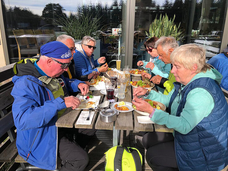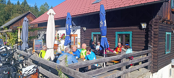 Trotz des kühlen Wetters beim Radeln schmeckte die Jause in der Wimmer-Stube.