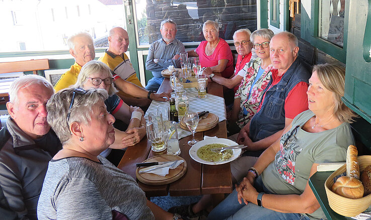 14 PensionistInnen wanderten bei herrlichem Wetter den Zentrumsweg in Pichl. Den Abschluss fand die schöne Wanderung beim Bruckwirt bei gutem Essen.