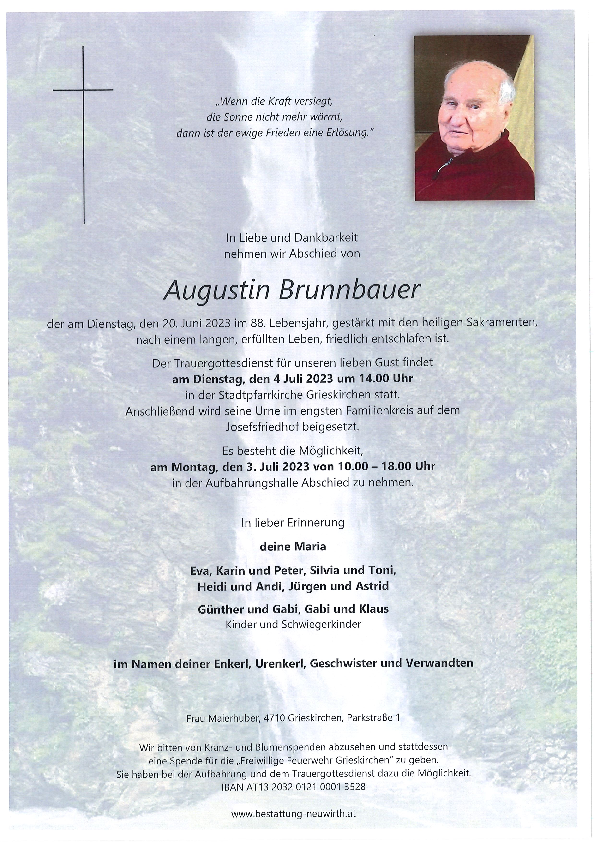 Wir trauern um unser langjähriges Mitglied Augustin Brunnbauer