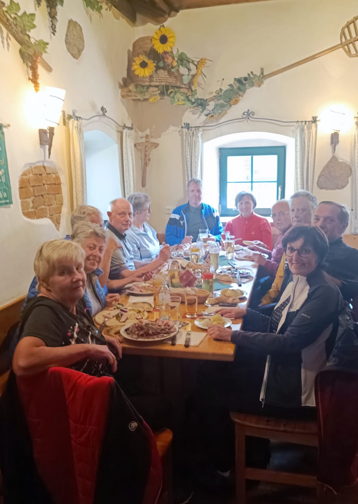 22 gut gelaunte und fitte Wanderer wurden von Hermann Oberauer und um Schwalbleck (517 m) und dann weiter Richtung Gallspach geführt, wo sie dann am Theaterweg bis zum Gasthaus Geßwagner wanderten. Die zurückgelegten 7.8 km machen hungrig und die gutbürgerliche Wirtshausküche wurde von allen sehr genossen.