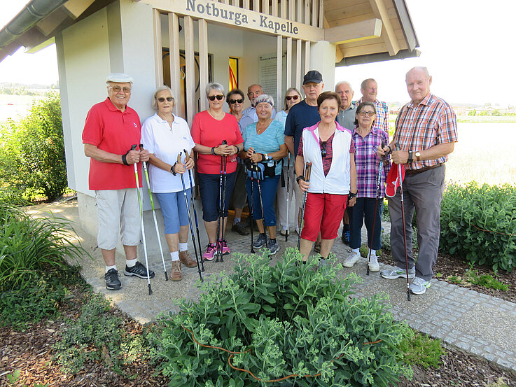 Bei angenehmem Wetter führte die Wanderung zunächst vom Mostheurigen Wastlbauer zur Fatima-Kinderkapelle im Stralberger Wald. Leider konnte diese nur von außen betrachtet werden. Die Kapelle wurde von Paul Traunwieser, einem gebürtigen Kallhamer, errichtet. Der Altar besteht aus 130 verschiedenen Hölzern, die aus der ganzen Welt stammen. Das einzigartige Stück wurde von Walter Wagner aus Neumarkt errichtet. Nach der Rückkehr von der ca. 6,3 km langen Strecke kehrte die Wandergruppe noch beim Wastlbauer ein.