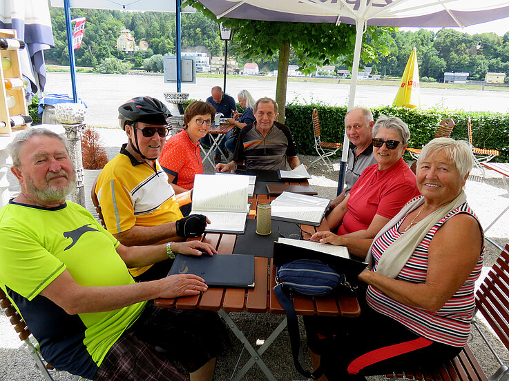 Bei bestem Sommerwetter führte die Radausfahrt von Eferding zum Rosarium Gruber nach Trattwörth und weiter auf dem Donauradweg zum Kraftwerk Ottensheim. Hier überquerten wir die Donau und anschließend ging es auf dem Donauradweg zu den Badeteichen in Feldkirchen. Mittags kehrte wir im griechischen Restaurant Kreta in Aschach ein. Vorzüglich wurde gespeist und mit Elan ging es danach auf den Rädern zurück nach Eferding.