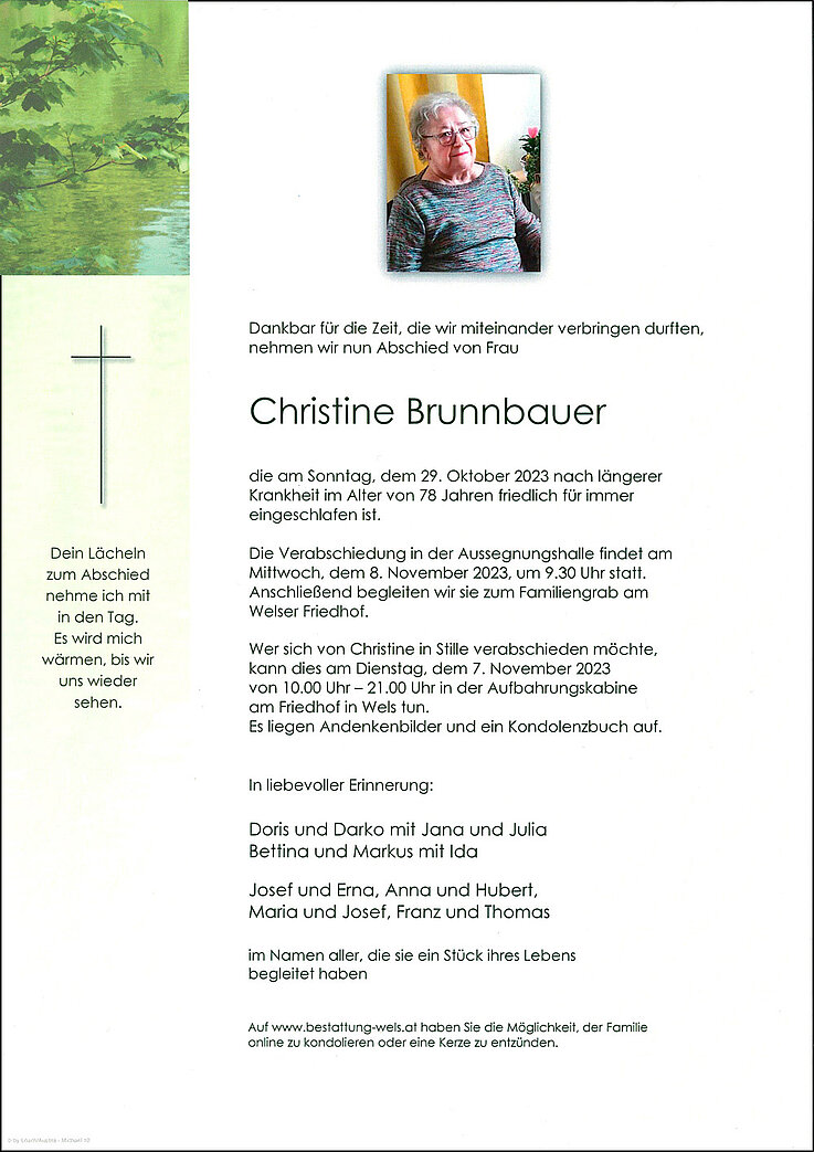 Wir trauern um unser langjähriges Mitglied Christine Brunnbauer