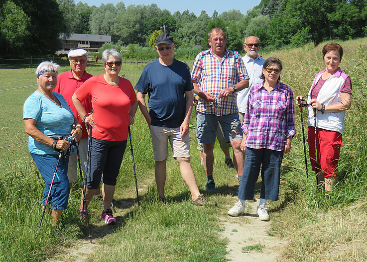 Herbert Sittenthaler hat eine sehr schöne, abwechslungsreiche Strecke ausgesucht. Gestartet wurde beim Bahnwirt in Pötting. Zunächst führte die 5,5 km lange Wanderung entlang der Aschach zur Firma DOMICO und weiter zum Mittelpunkt des Bezirk Grieskirchen an der Gemeindegrenze von Pötting und Taufkirchen an der Trattnach bei den Ortschaften Obernführt und Eiblhub. Zurück ging es über das Reintal und Moos nach Pötting. Zum Abschluss kehrt die Gruppe bei der Bahnhofwirtin in Pötting ein. Elf PensionistInnen nahmen an der Wanderung teil.