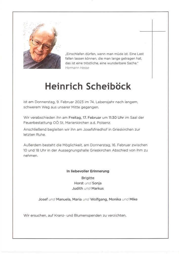 Wir trauern um unser Mitglied Heinz Scheiböck