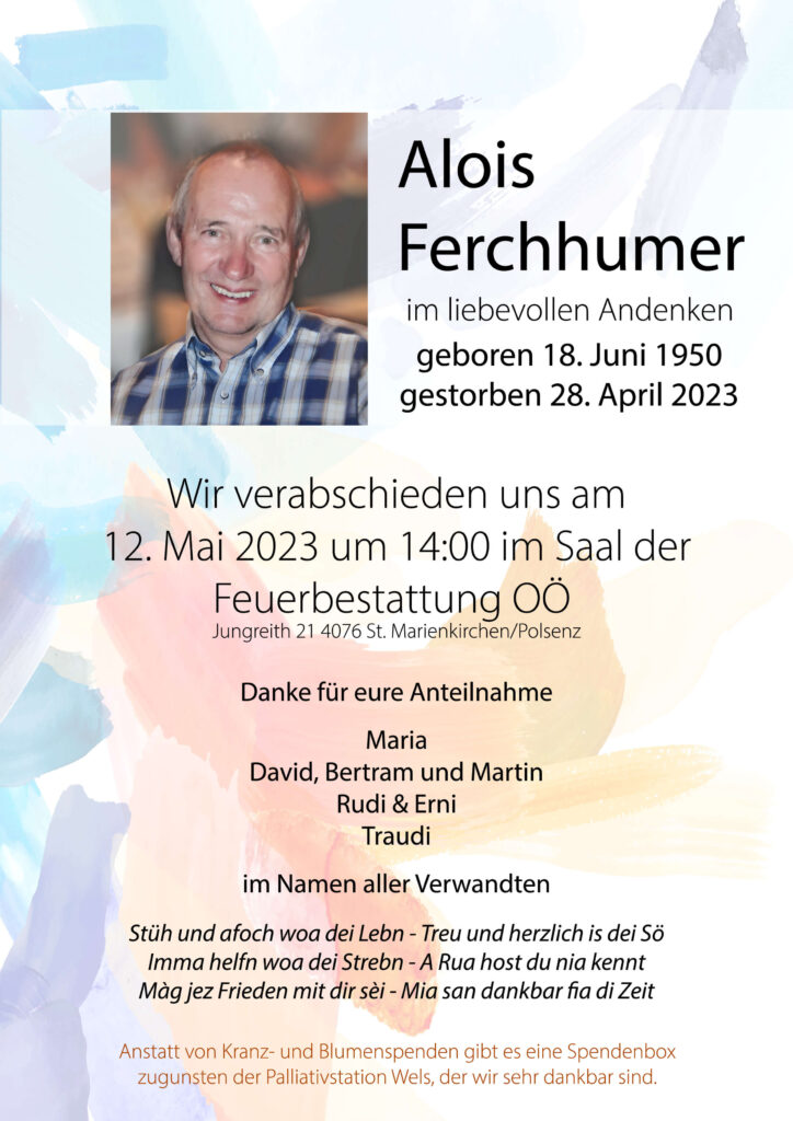 Wir trauern um unser Mitglied Alois Ferchhumer