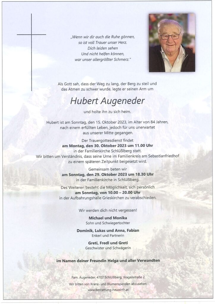 Wir trauern um unser langjähriges Mitglied Hubert Augeneder