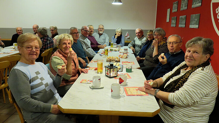 35 Mitglieder feierten im Gasthaus Friedl am Schallerbacherberg bei sehr fröhlicher Stimmung den Faschings-Infonachmittag. Zudem feierte Helmut Irkuf Geburtstag.