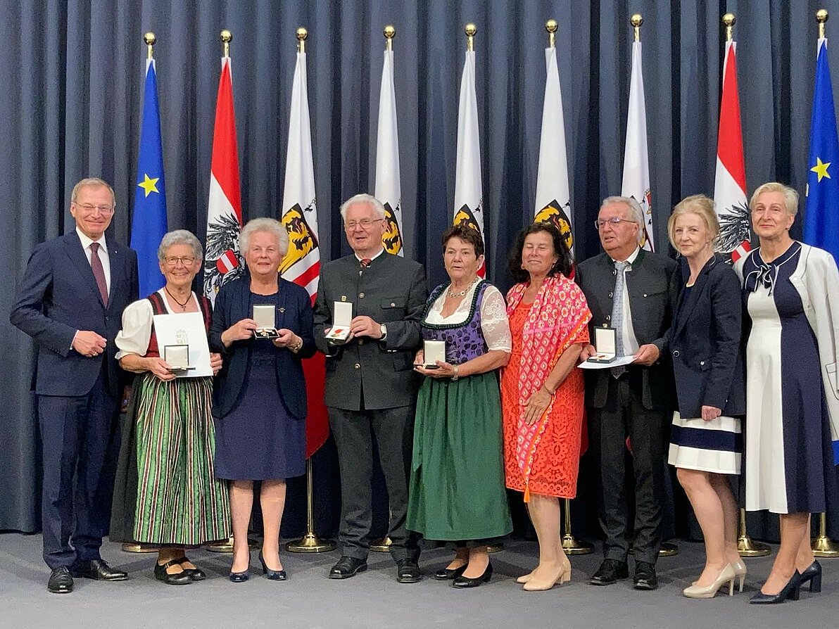 Im Beisein von PV-Landespräsidentin Birgit Gerstorfer, PV-Landessekretärin Mag.a Jutta Kepplinger und Bezirksvorsitzender Erika Diensthuber überreichte Landeshauptmann Mag.Thomas Stelzer im festlichen Rahmen des Landhauses Linz das Silberne Verdienstzeichen des Landes OÖ an Konsulentin Edeltraud Guggi und die Verdienstmedaille des Landes OÖ an Manfred Atzmüller, Josefine Gerstmayr, Rudolf Lackner und Veronika Mitterhumer. Mit diesen Ehrenzeichen wurde den Funktionär_innen für ihren langjährigen ehrenamtlichen und für die ältere Generation so wichtigen Einsatz eine besondere Wertschätzung ausgedrückt. Bei dem Festakt wurden die Ausgezeichneten auch von ihren Familien und den Bürgermeister_innen ihrer Gemeinde begleitet.