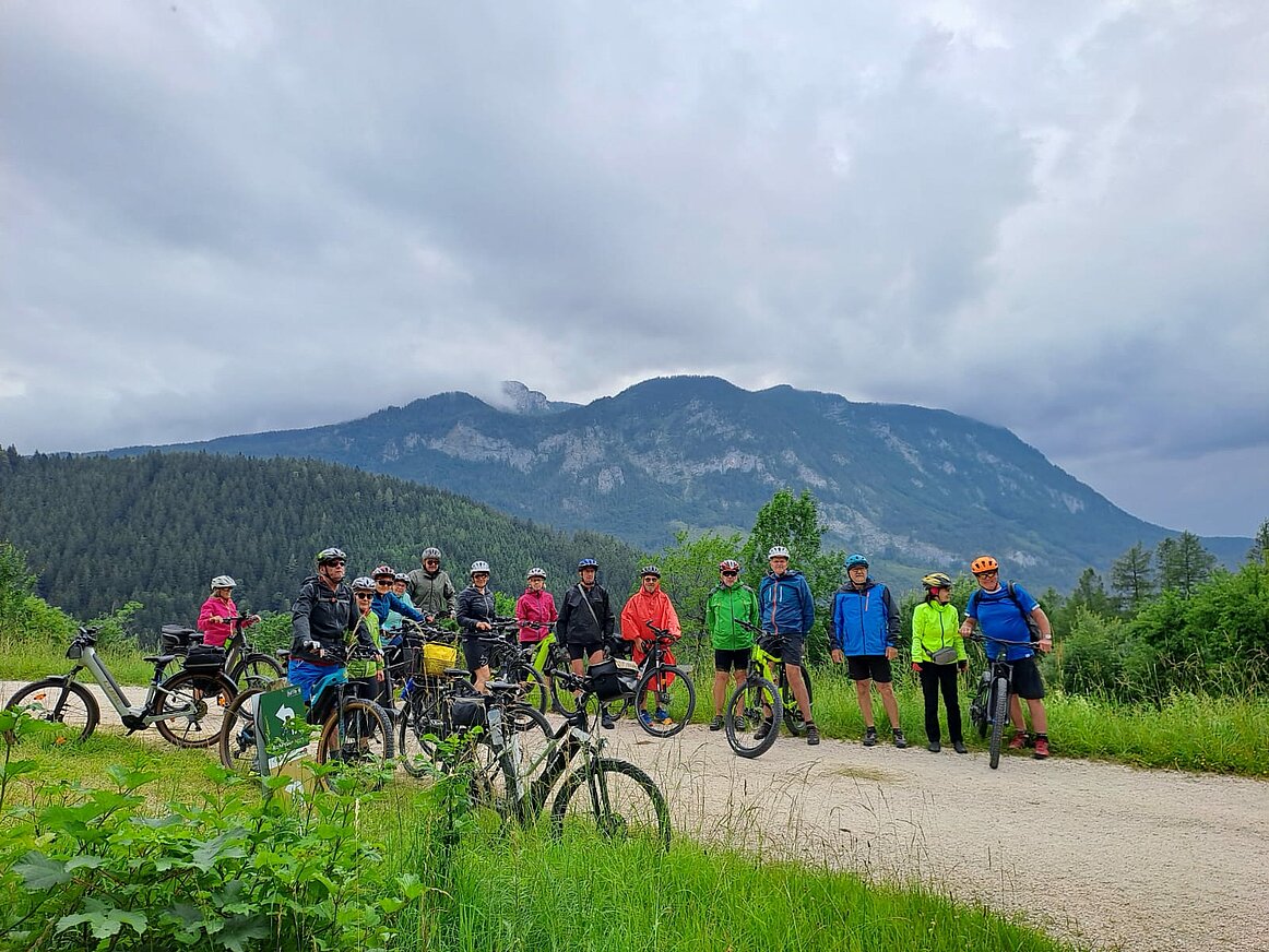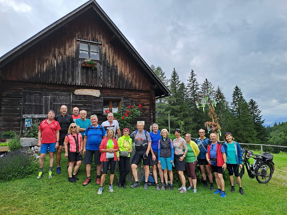 Bei der heurigen durchgeführten E-Radtour auf die Ochsenwaldalm nahmen 18 Teilnehmer bei durchwachsenem Wetter teil. Von Windischgarsten auf die Alm wo wir von den Wirtsleuten bestens versorgt wurden, bei der Rückfahrt vertrauten einige nicht dem Wetter und haben sich regendicht gemacht, kurz vor Windischgarsten mussten wir uns aber alle regendicht machen. Am Parkplatz „Würstlhütte“ in Windischgarsten, wo wir gestartet sind, ließen wir unsere Tour mit sehr guten Kasnock‘n und 1-2 Getränken ausklingen.Zur Erinnerung: die Tour war 32 km lang und führte über zirka 650 hm . Alle Teilnehmer hatten genug Kraft in den Beinen so dass sich kein Akku entleerte.