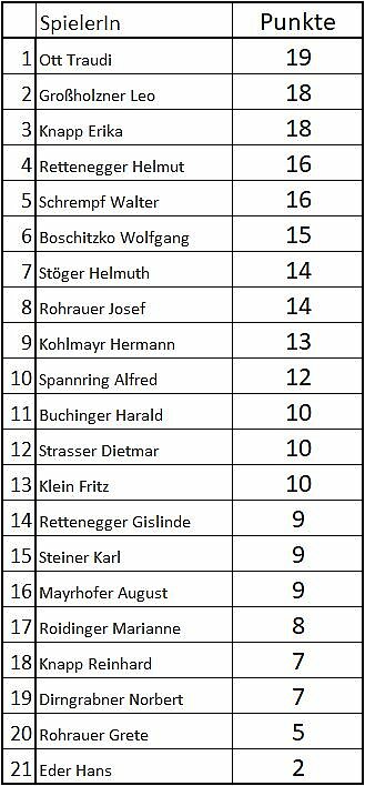 Für Traudi Ott, unserer heurigen Siegerin, die jeden Dienstag zum Schnapsen ins Seniorenheim kommt,
