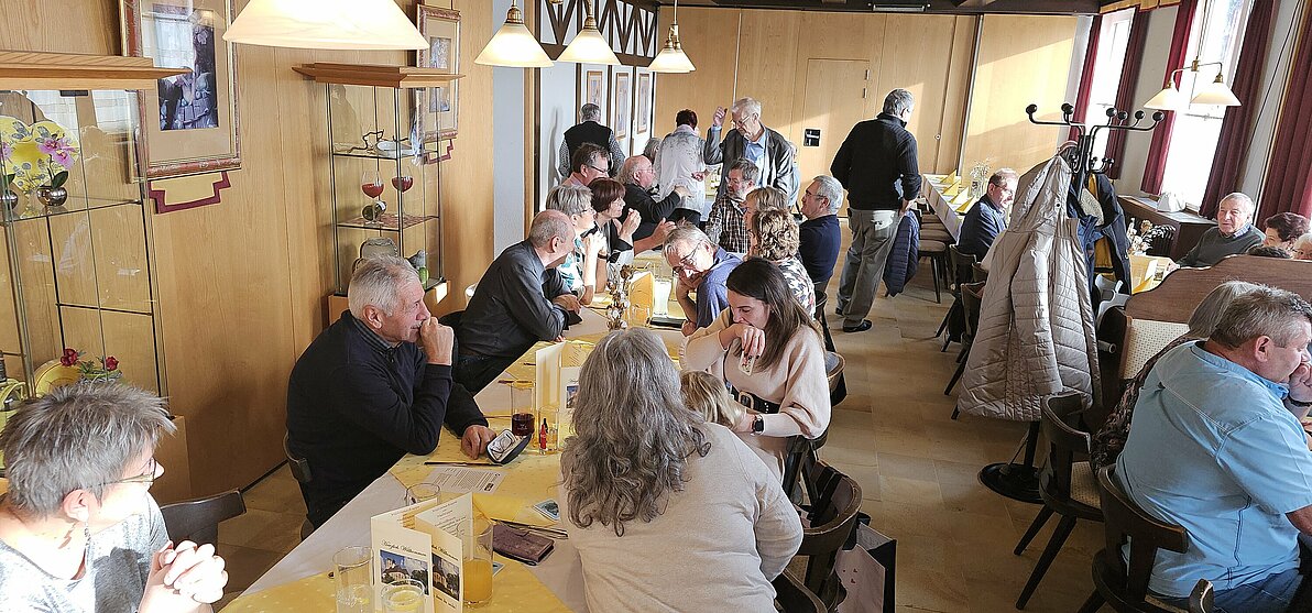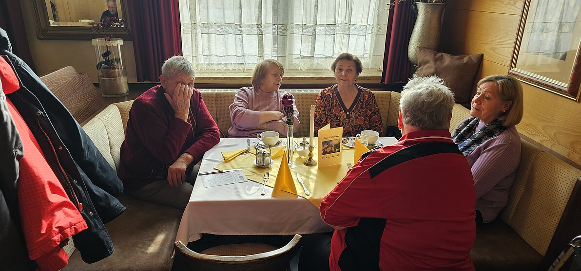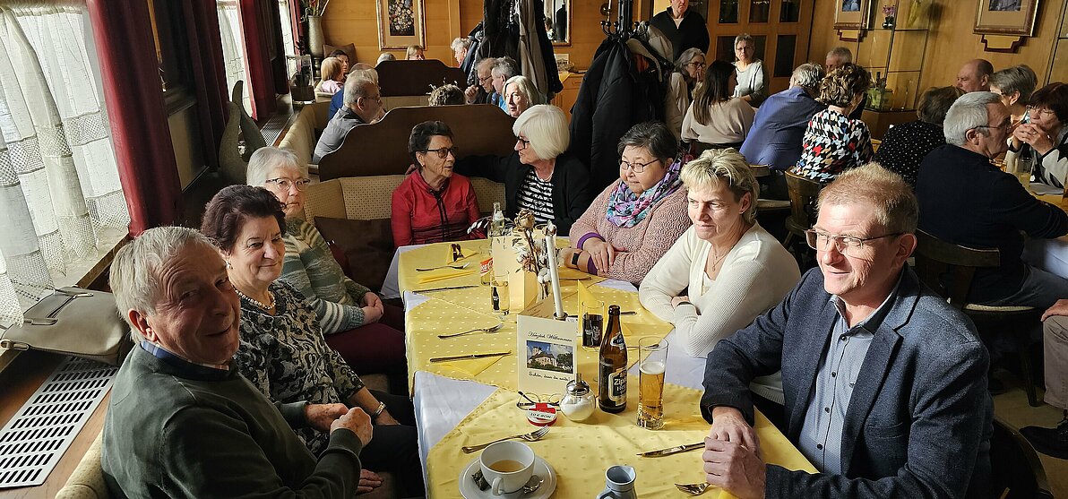 Unsere letzte Wanderung im Jahr 2023 führte uns traditionell zum Weiß’n am Sattel. Dort trafen sich 36 Personen zum Mittagessen. Sepp und Hans spielten auf und bescherten uns einen vergnüglichen Nachmittag.