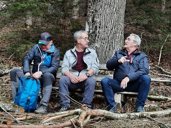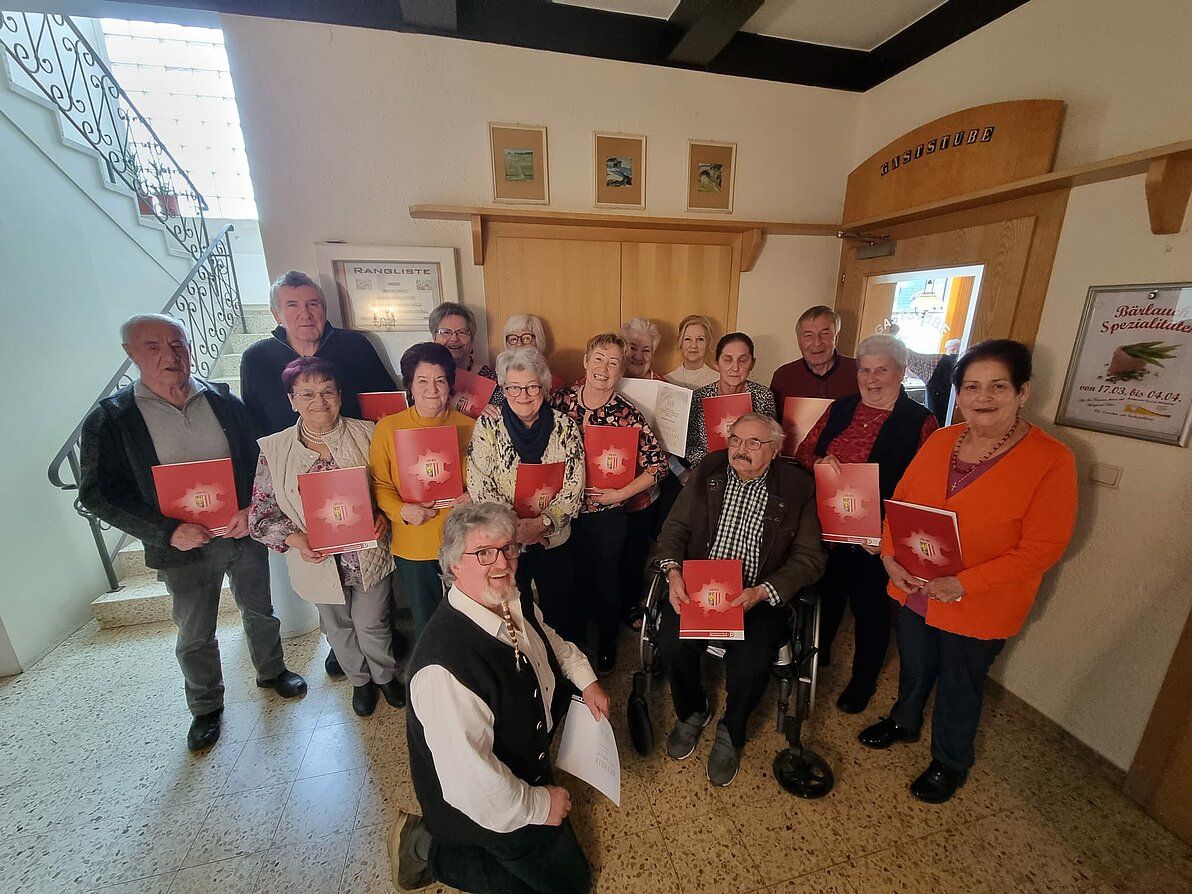 Unsere letzte Wanderung im Jahr 2023 führte uns traditionell zum Weiß’n am Sattel. Dort trafen sich 36 Personen zum Mittagessen. Sepp und Hans spielten auf und bescherten uns einen vergnüglichen Nachmittag.