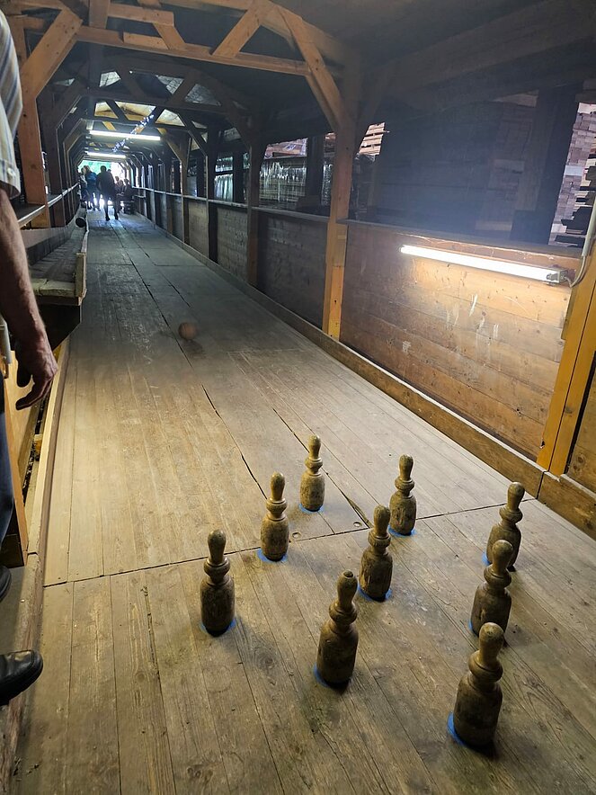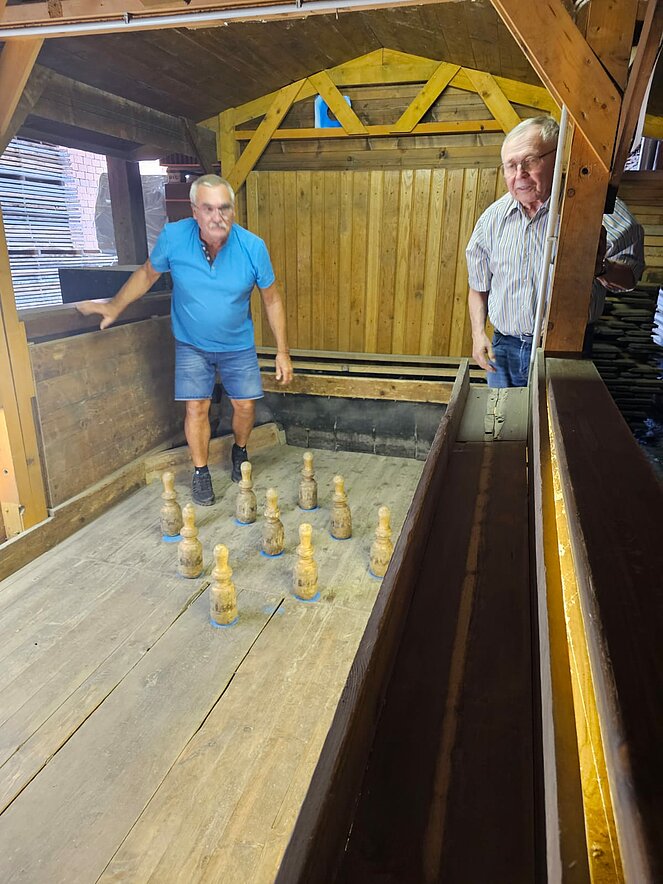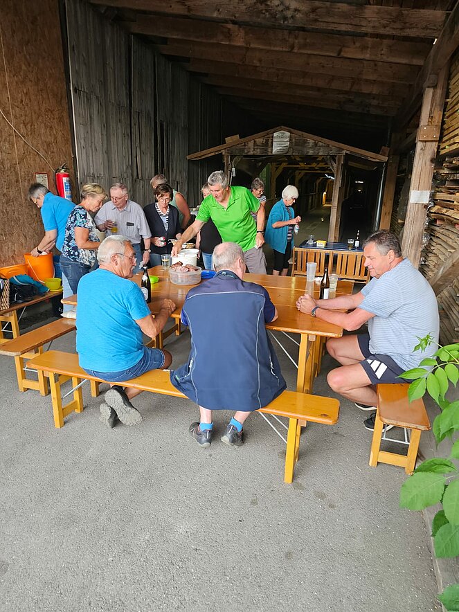 In der Urlaubszeit traten auch wir ein wenig kürzer. Unsere Aktivitäten beschränkten sich auf Knitteln und einmal Kegeln auf der Ladenbahn. Am 22.8.2023 nahmen 34 Personen am Ausflug zur Erlebnisgärtnerei Bergmoser und zur Fa. Kletzl teil. Wir fuhren zuerst zur Erlebnisgärtnerei Bergmoser, dem größten Schnittblumengärtner Oberösterreichs, nach Frankenmarkt. Dort wurden uns die Arbeitsvorgänge von der Aufzucht der Pflanzen bis zum Schnitt der Blumen und die Auslieferung an die einzelnen Verkaufsstellen erklärt. Danach ging es weiter zur Fa. Kletzl wo wir zuerst eine sehr gute Jause bekamen ehe die Betriebsführung begann. Uns wurde der Herstellungsprozess der Wurstwaren von der Fleischanlieferung bis zum Endprodukt erklärt. Nach den vielen Informationen ging es zum Abschluss eines sehr gemütlichen aber sehr heißen Tages in den Gastgarten des Gasthauses Hudernwirt.