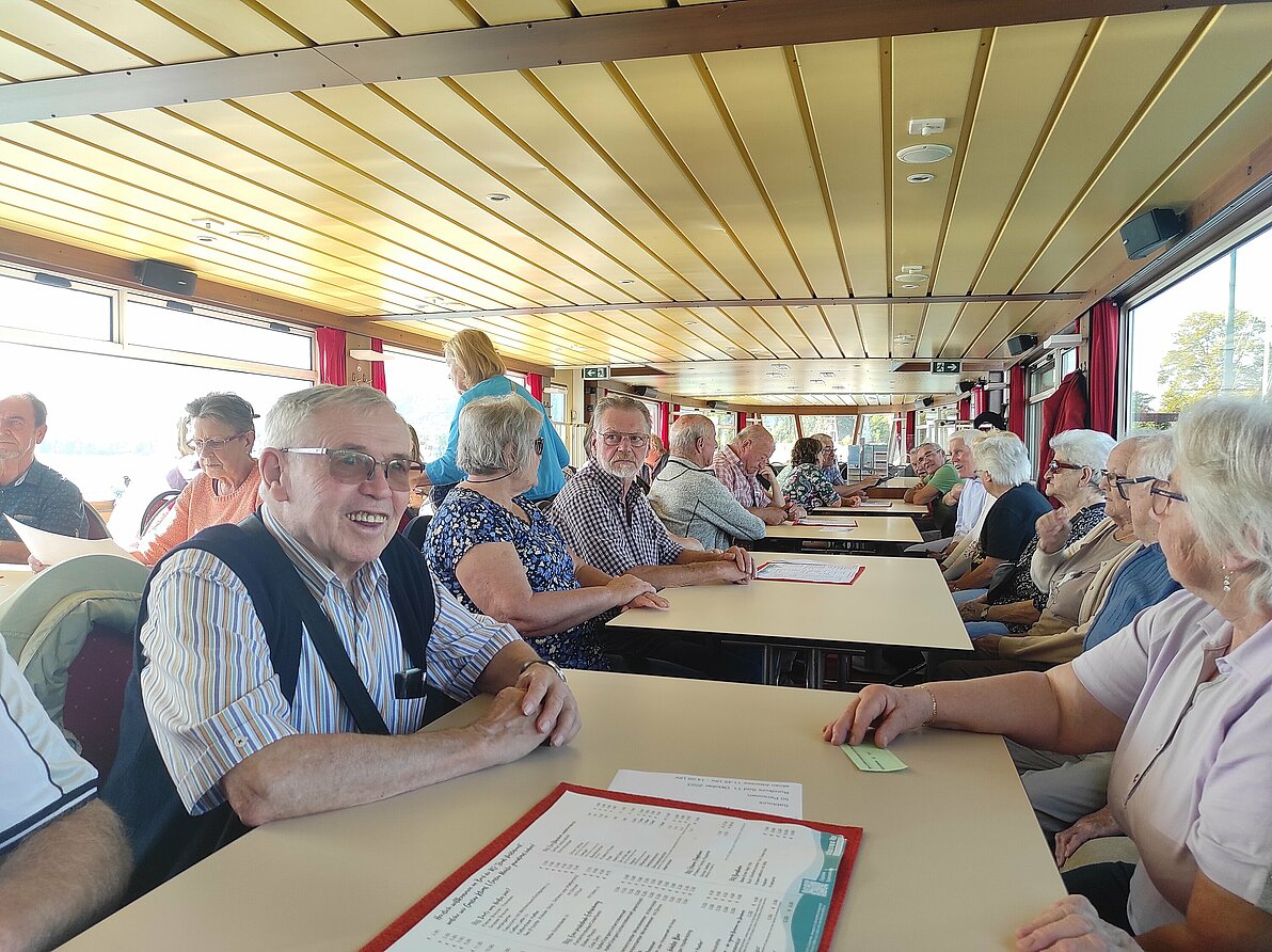 Am 11. Oktober fand unsere jährliche „Fahrt ins Blaue“ statt. Die Neugierde war sehr groß und alle waren gespannt wo es hingeht. Die Fahrt ging auf der Autobahn Richtung Salzburg. Wir stiegen in Vöcklamarkt in den Zug ein und fuhren weiter nach Attersee. Dort begaben wir uns auf ein Schiff und machten eine Rundfahrt am Attersee. An Bord gab es eine kleine Jause. Wir genossen das wunderschöne Wetter und alle hatten große Freude.