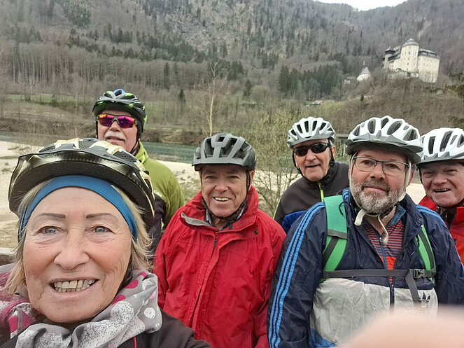 Unsere Radausfahrt im April startete in der Jageredt. Wir fuhren über Schlierbach, Lauterbach, Kirchdorf, Frauenstein, zur Staumauer. Im Gasthau Schinagl kehrten wir ein und fuhren am Radweg wieder Richtung Kirchdorf und Jageredt.
