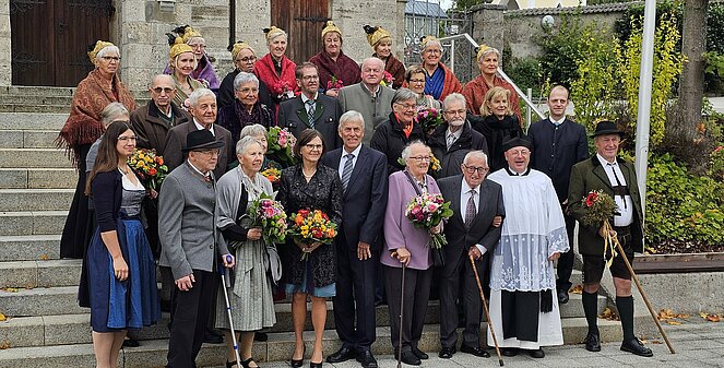 Acht Nußbacher Jubelpaare trafen sich am Sonntag, 5. Oktober 2025 in der Pfarrkirche Nußbach, um ihre besonderen Ehejubiläen zu feiern. Mit einem Oldtimer-Bus fuhren alle ins Gasthaus Genuss Schmied’n, wo bei einem guten Essen, Kaffee und Kuchen noch einige gemütliche und festliche Stunden verbracht wurden.