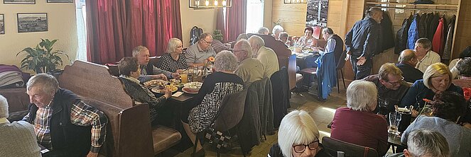 Bei eisigen Temperaturen starteten 16 Personen bei der Jageredt in Nussbach. Die Wanderung führte über Wimberg, nach Nussbach und über Göritz zurück zur Jageredt. Auf dieser Strecke wurde ein kleiner Abstecher mit Umdrunk gemacht. Danke an unsere Riki für die Bewirtung. Der Abschluss fand in der Taverne zum Griechen statt, wo wir mit sehr gutem Essen verwöhnt wurden.