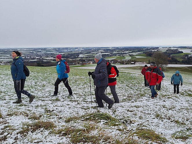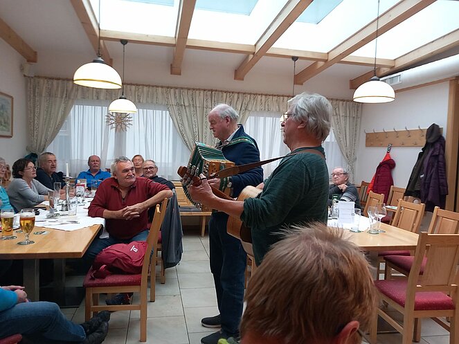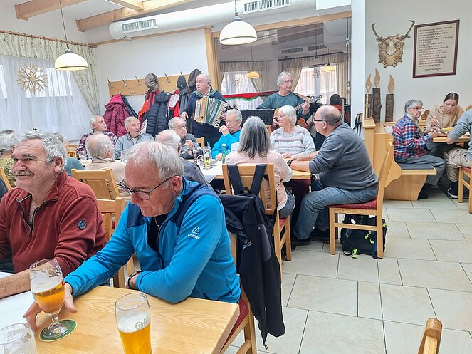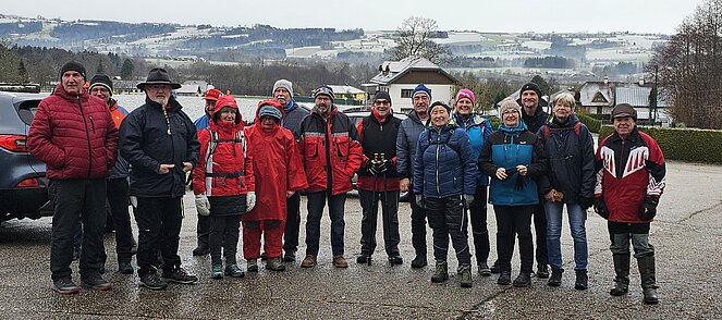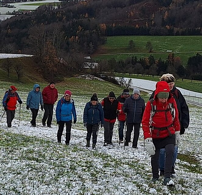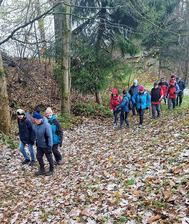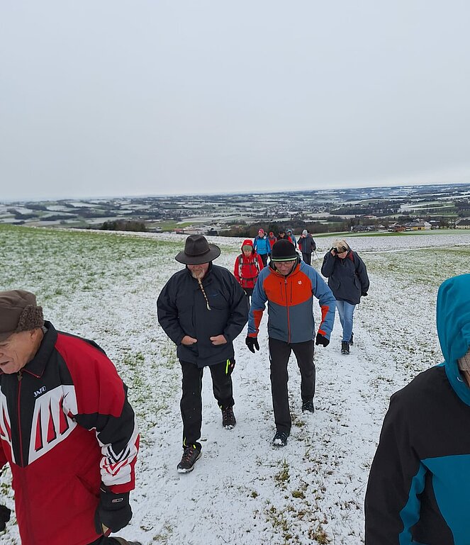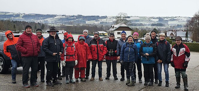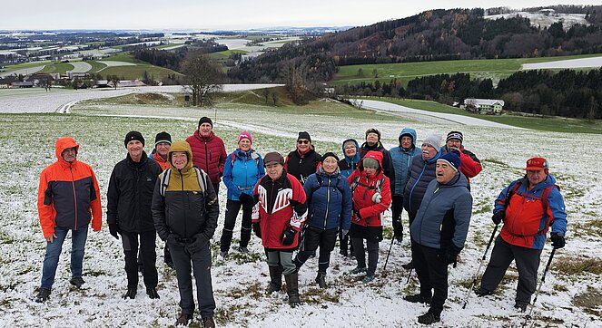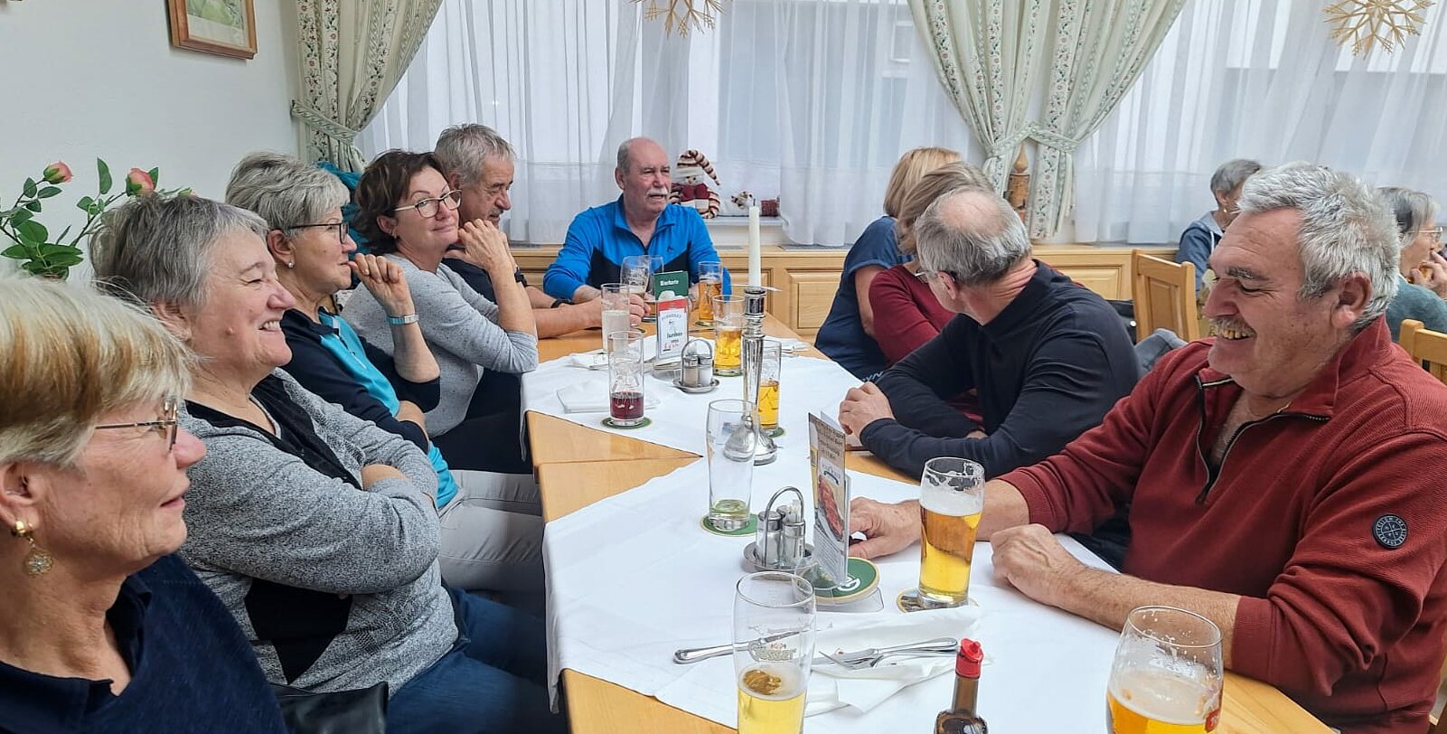 Unsere letzte Wanderung des Jahres führte uns heuer von der Jageredt Richtung Hochkogel nach Schlierbach. Bei leichtem Schneefall machten sich 18 Wanderfreunde auf den Weg und kamen nach etwa 2 Stunden beim Gasthaus Schröcker an. Dort warteten schon viele unserer Mitglieder, um gemeinsam zu essen und zu feiern. Wir wurden mit sehr gutem Essen verwöhnt. Sepp Schoißwohl und Hans Wasserbauer haben uns mit Musik und Witzen unterhalten.